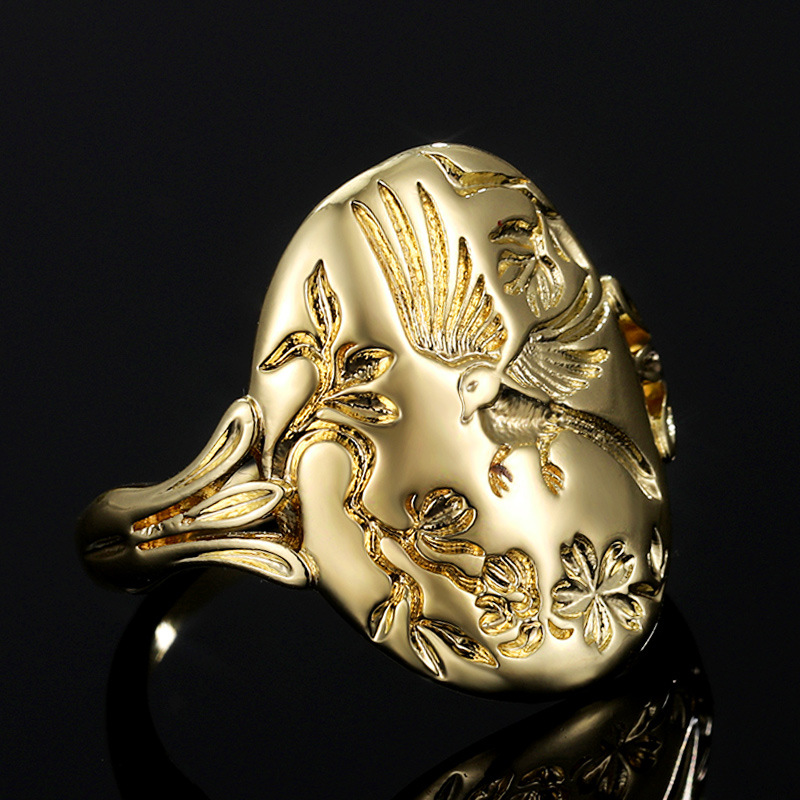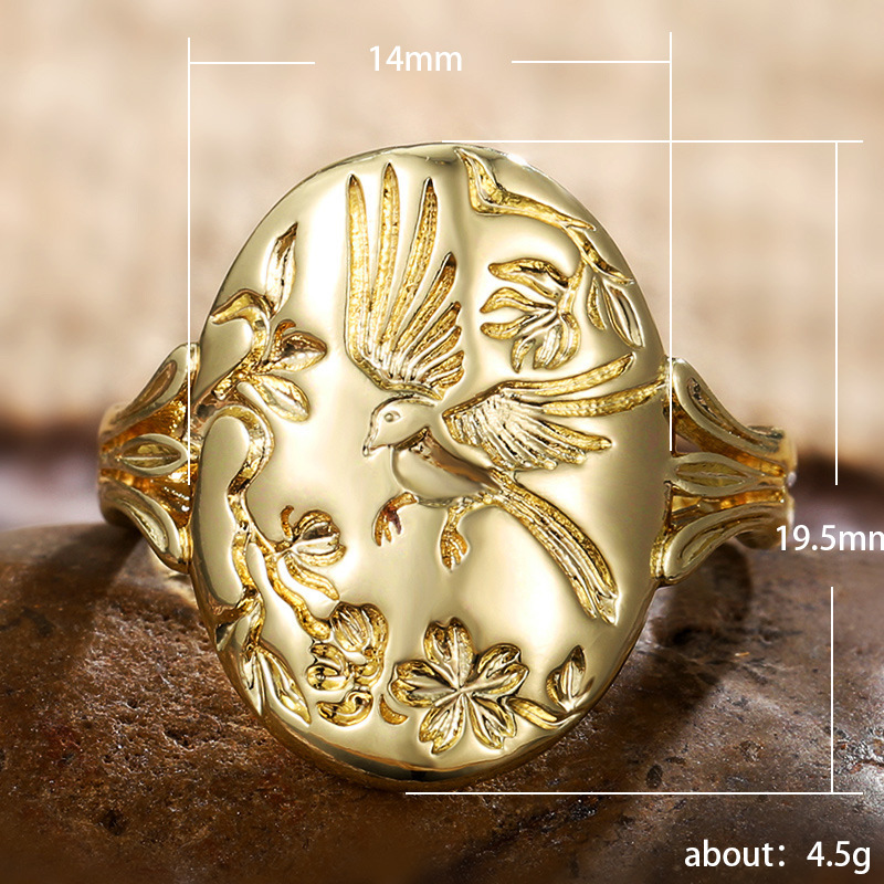 New European and American creative copper ring with exquisite relief carving, unisex couple ring