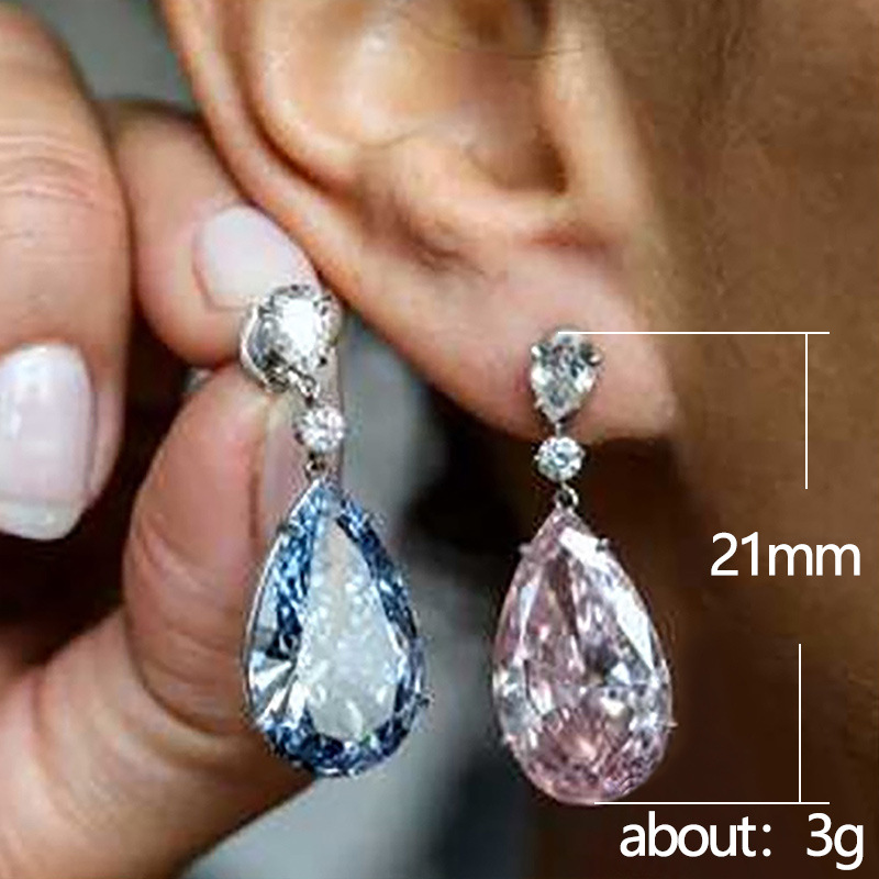 New European and American earrings, elegant lady pink diamond pear-shaped teardrop earrings for women, strong jewelry factory supply
