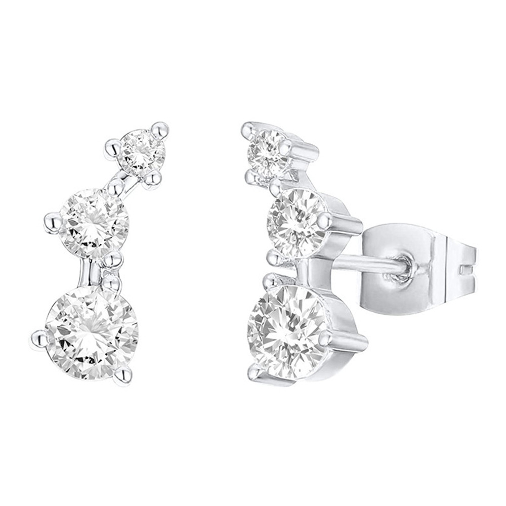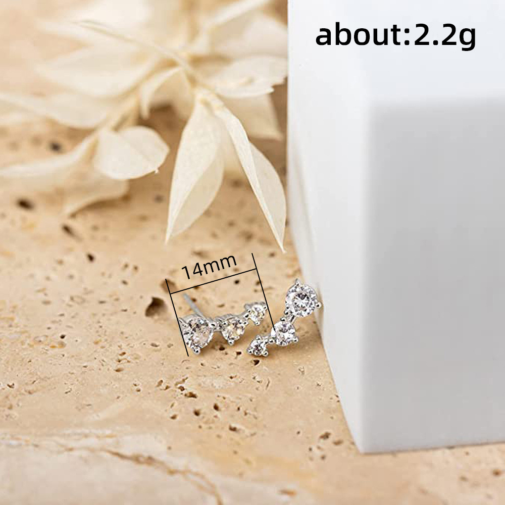 New European and American earrings, simple curved sparkling zircon earrings, row diamond women's earrings, hot sale