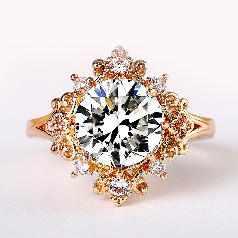 New zircon ring hollow cross four claws fashion design proposal wedding ring birthday gift ring