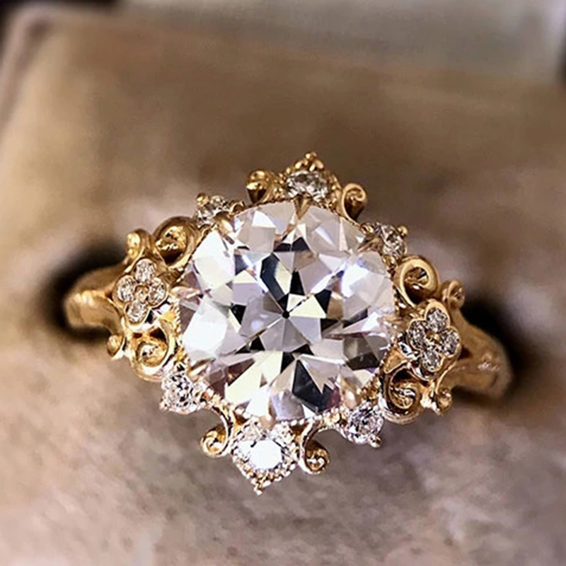 Micro-inlaid celebrity style classic all-match popular ring six-claw zircon wedding ring European and American style light luxury ring