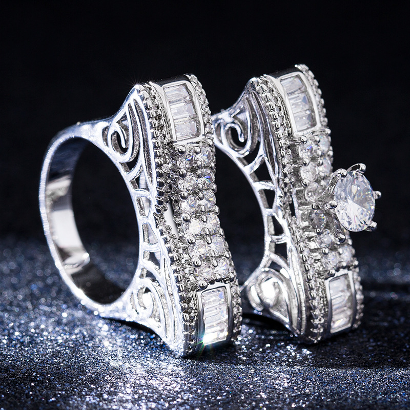 New zircon ring hollow cross four claws fashion design proposal wedding ring birthday gift ring