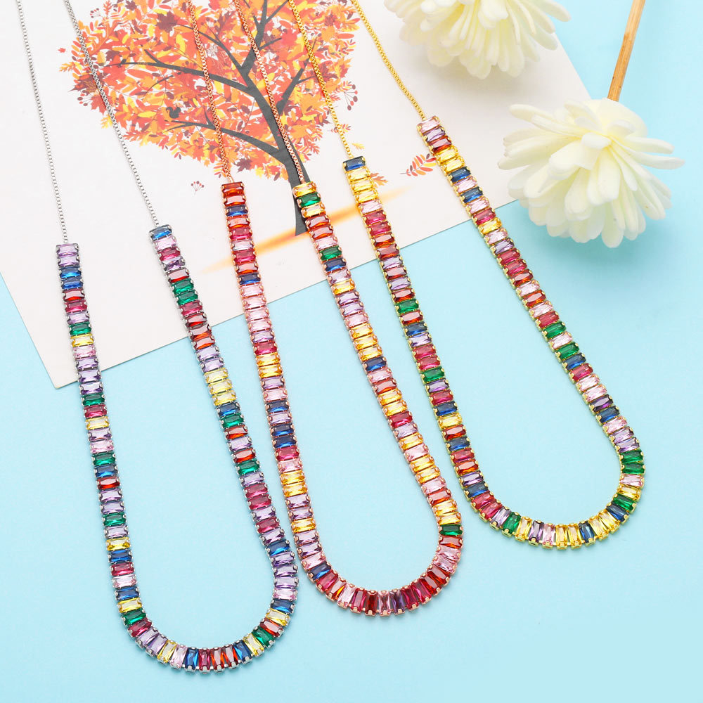 New European and American fashion color zircon necklace female advanced design niche simple clavicle chain nkb315