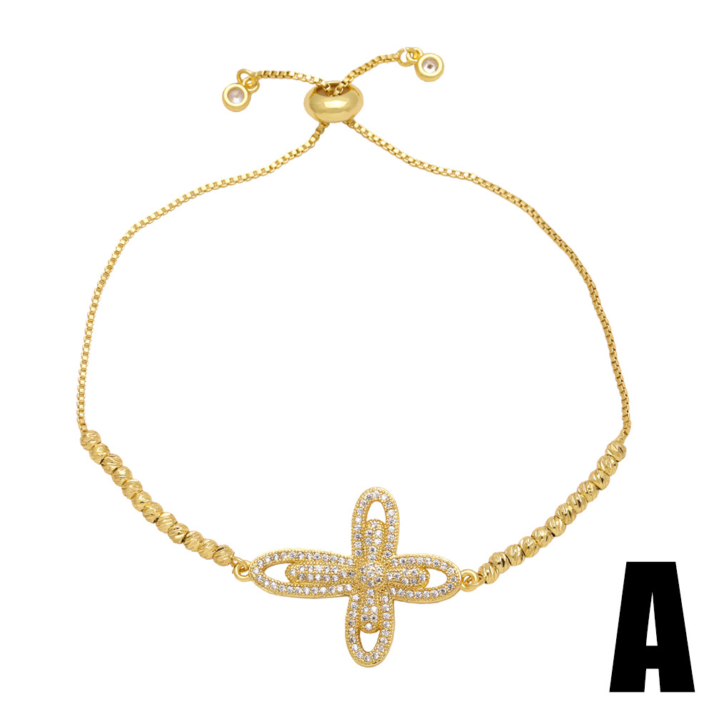 AS jewelry full zirconium 26 English letters bracelet copper plated real gold adjustment jewelry brm62