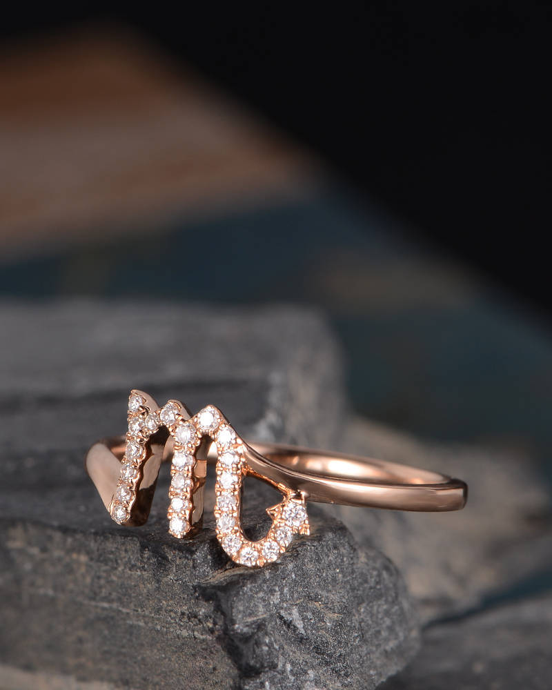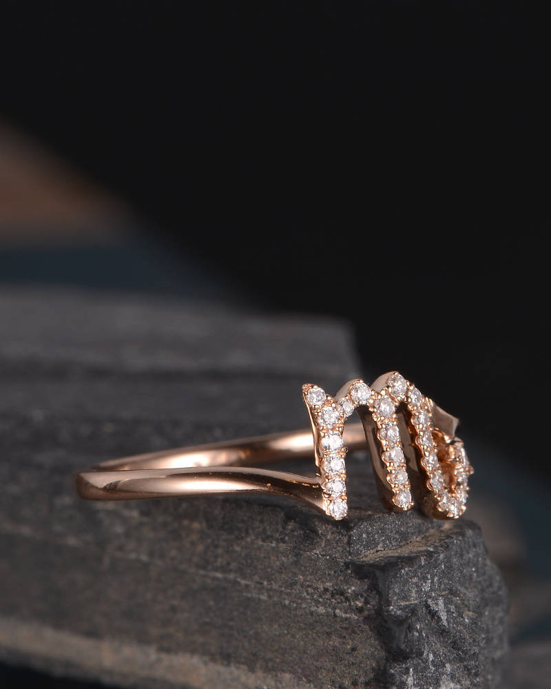 New European and American fashion diamond letter m women's ring copper plated rose gold inlaid zircon jewelry