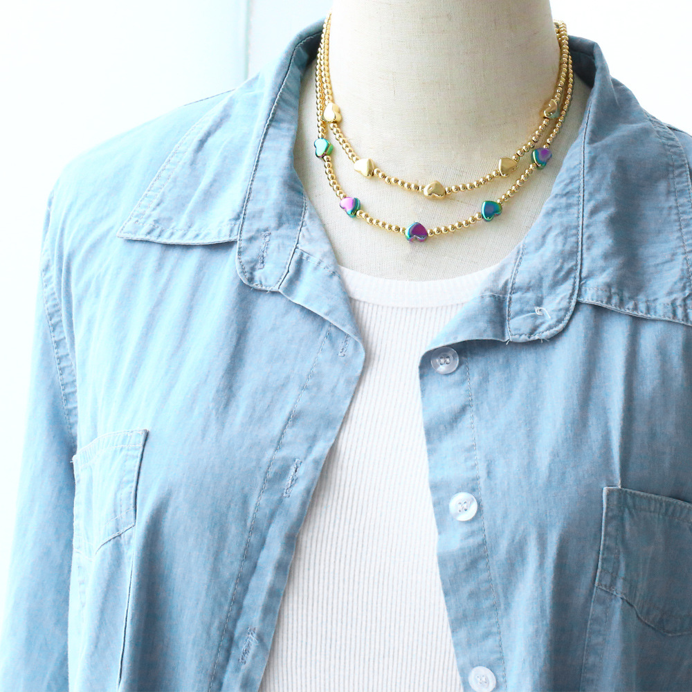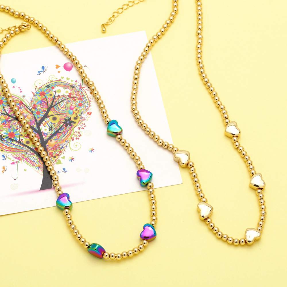 New European and American fashion hip-hop love beaded necklace female colorful heart-shaped versatile clavicle chain nkb144