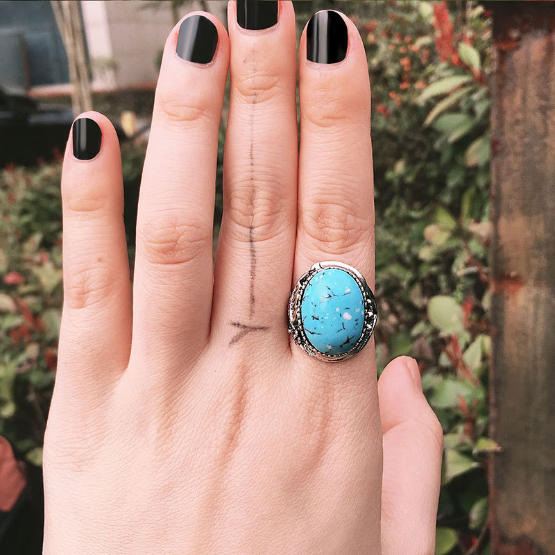 New European and American fashion imitation turquoise feather ring female retro creative gem ring jewelry