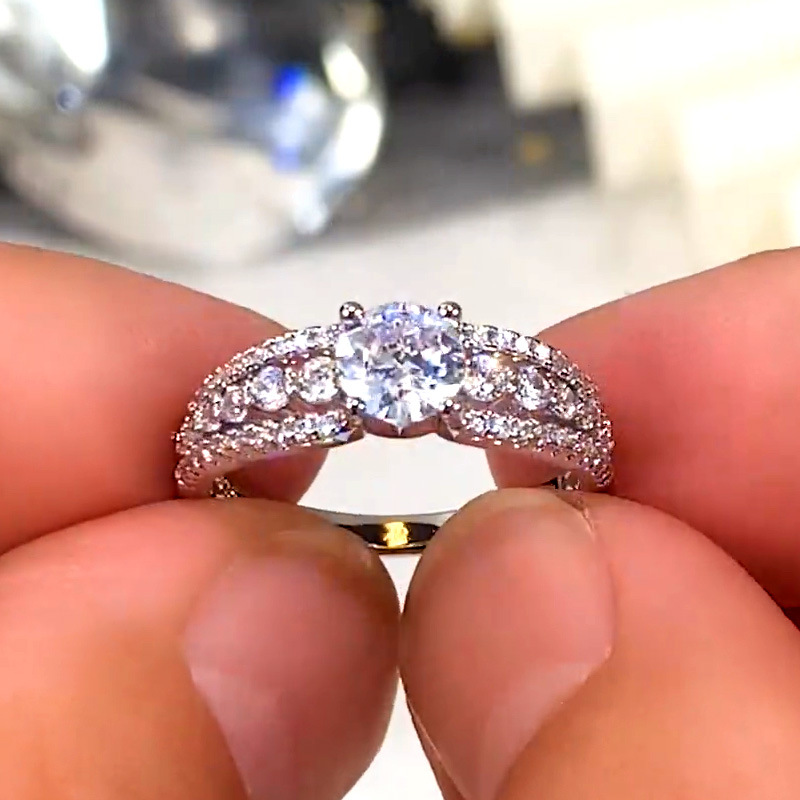 Micro-inlaid celebrity style classic all-match popular ring six-claw zircon wedding ring European and American style light luxury ring