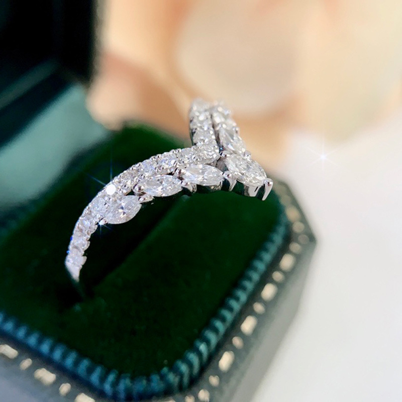 New European and American fashion V-shaped micro-inlaid zircon ring female princess engagement promise ring