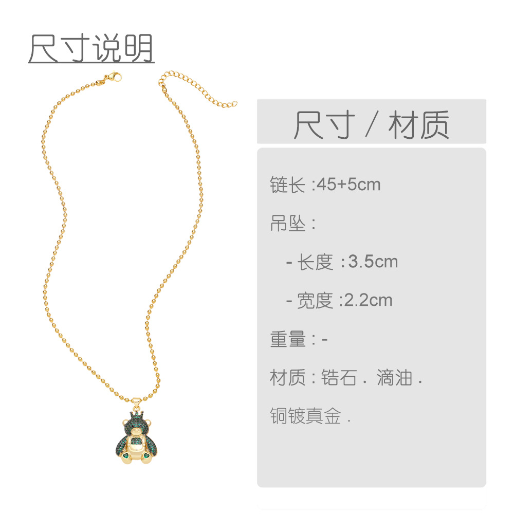 New European and American hip-hop full diamond zircon bear pendant necklace female niche personality clavicle chain nkq36