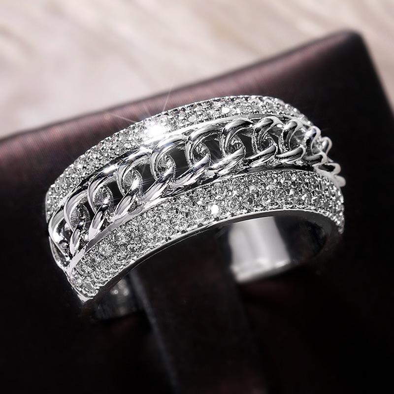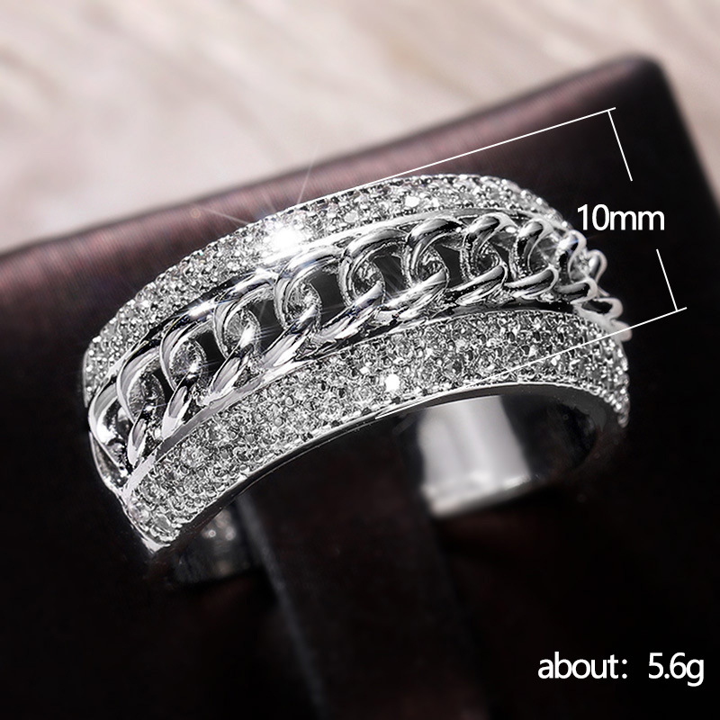 New European and American jewelry wholesale hip-hop style micro-inlaid zircon Cuban chain ring trendy men's and women's rings