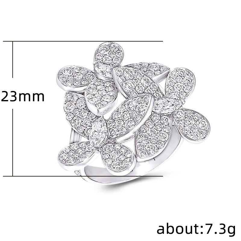 New European and American luxury atmosphere ladies flower shaped colored zircon ring party ring jewelry