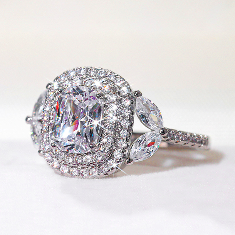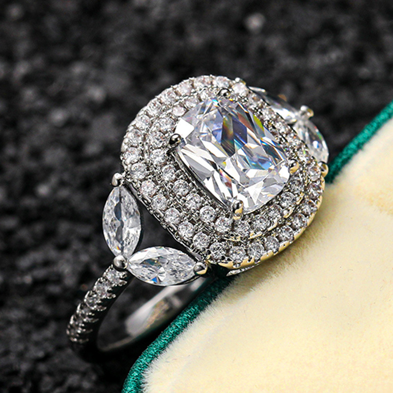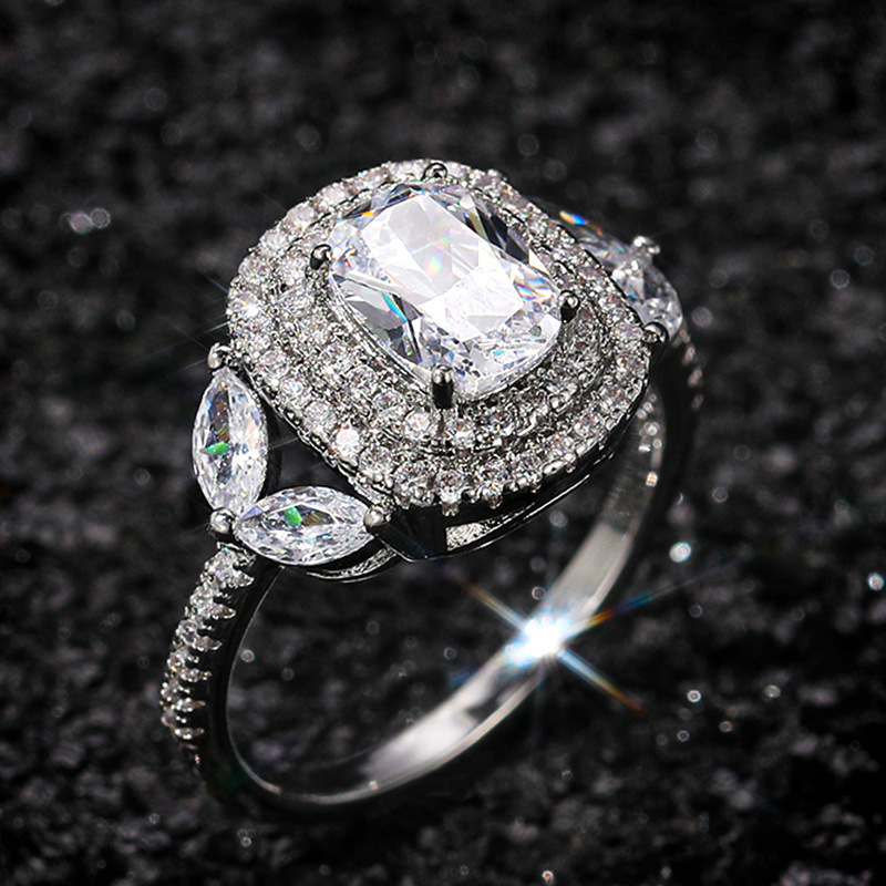 New European and American luxury wedding ring micro-encrusted diamond engagement ring fashionable temperament zircon ring