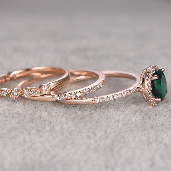 New European and American luxury zircon rose gold three-piece ring set for women's engagement jewelry