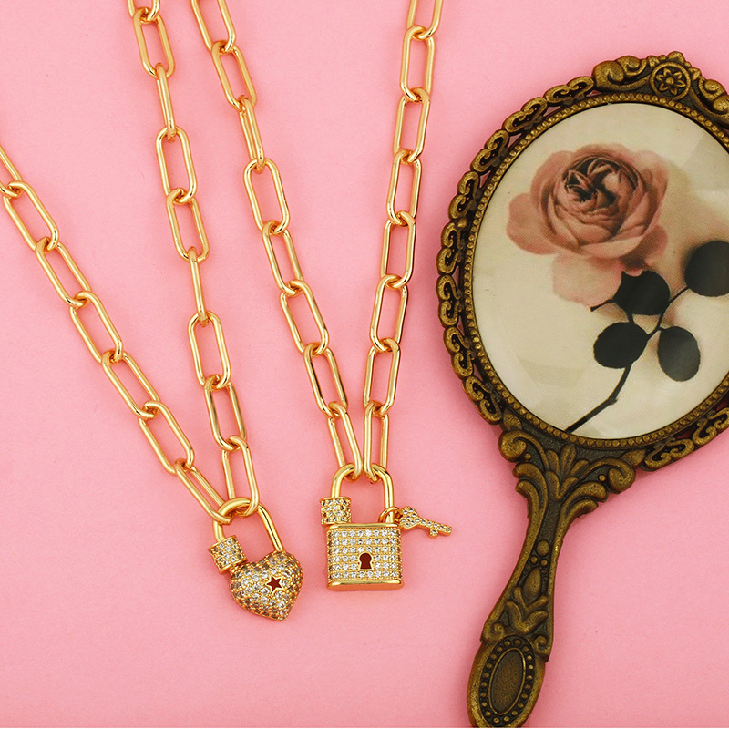 New European and American necklace creative micro-inlaid zircon lock pendant necklace net celebrity necklace female nkr60