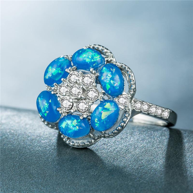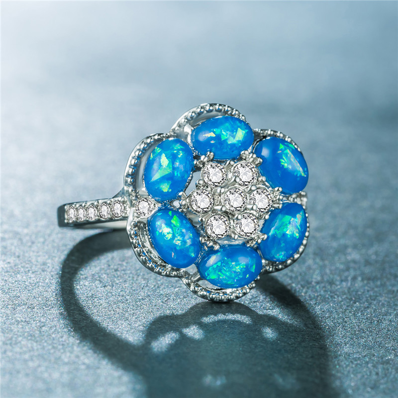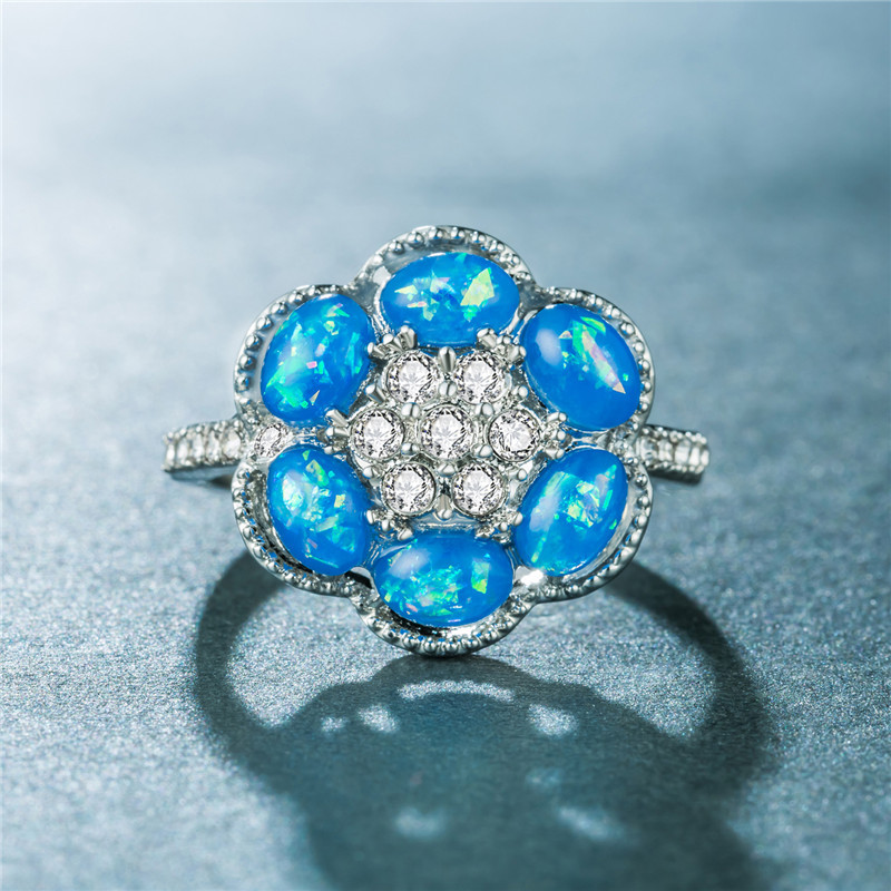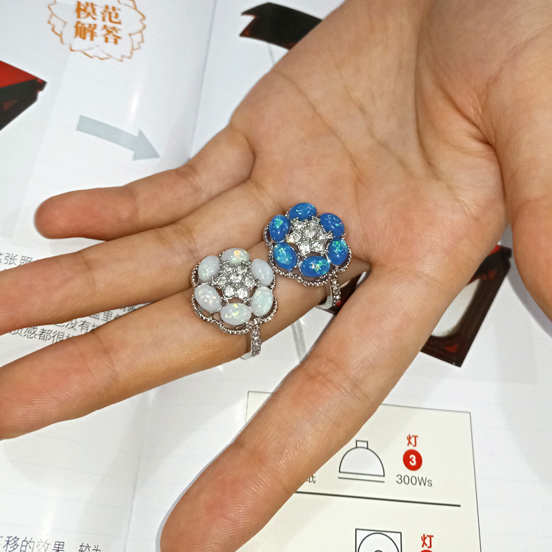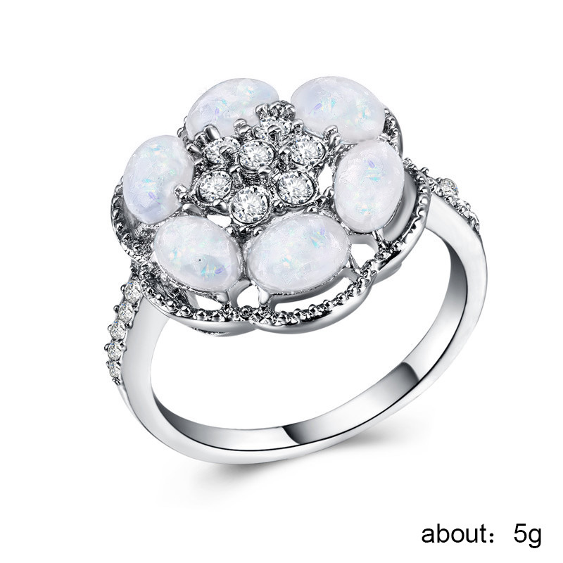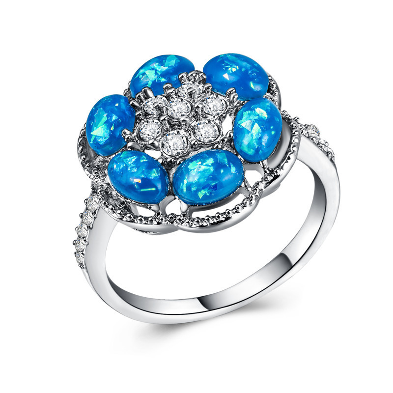 New European and American opal ring fashion personality hexagonal flower opal pinky ring female micro-inlaid rhinestone ring