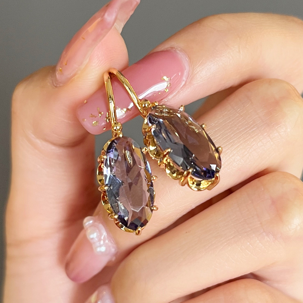 New European and American retro palace colored gemstone series inlaid zircon octagonal buckle earrings ear hooks