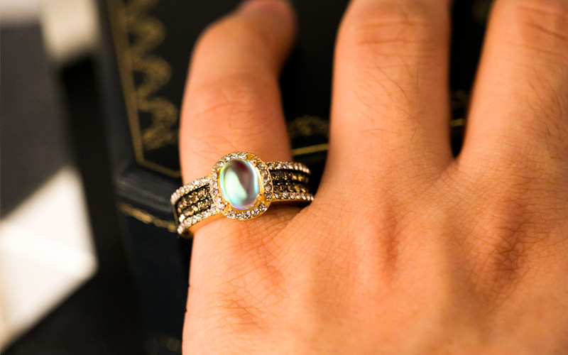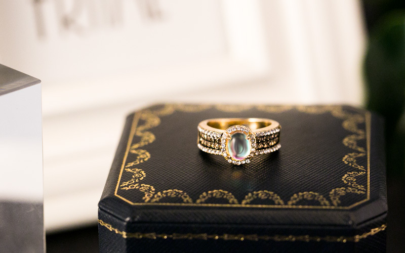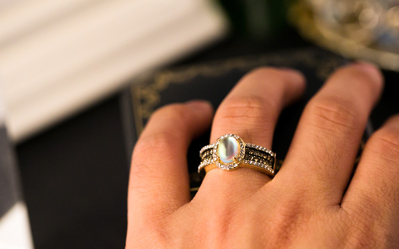 New European and American retro style ladies moonstone ring alloy plated with 14k gold crystal jewelry