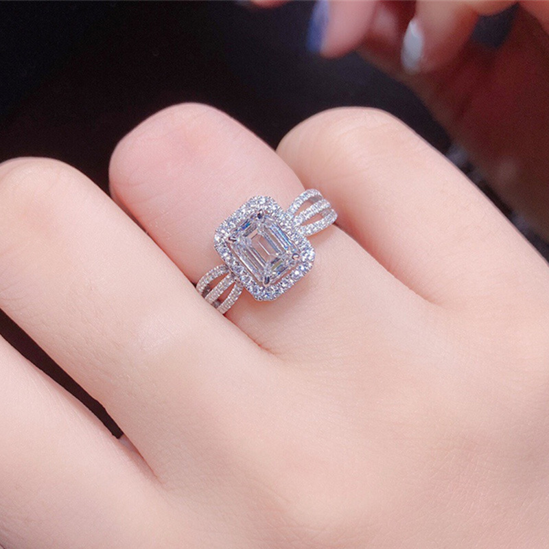 Hot selling new princess square ring European and American hot style inlaid zircon women's jewelry engagement proposal ring