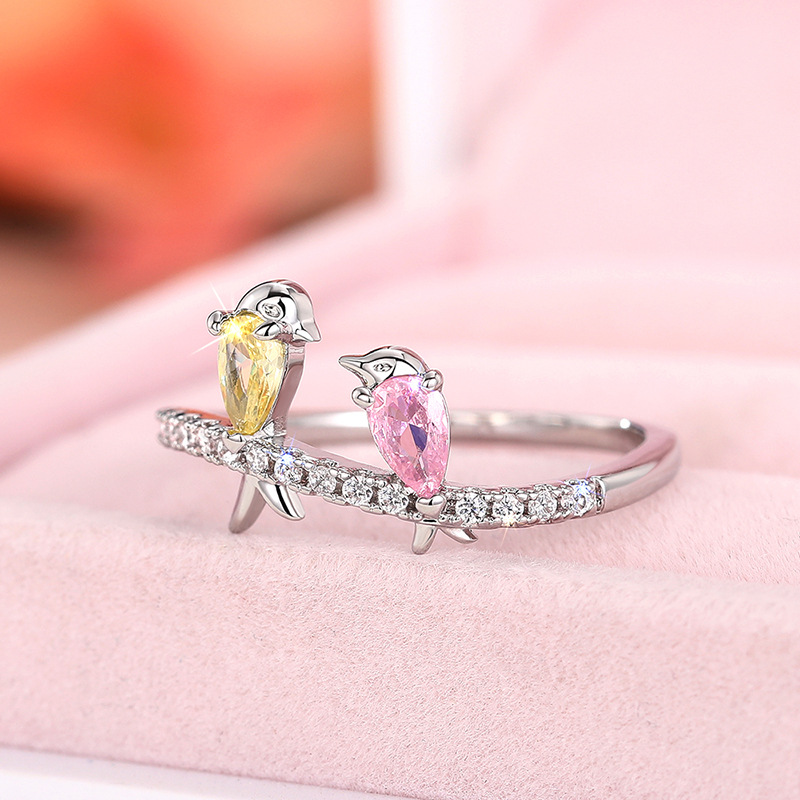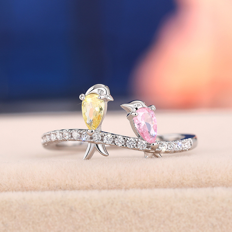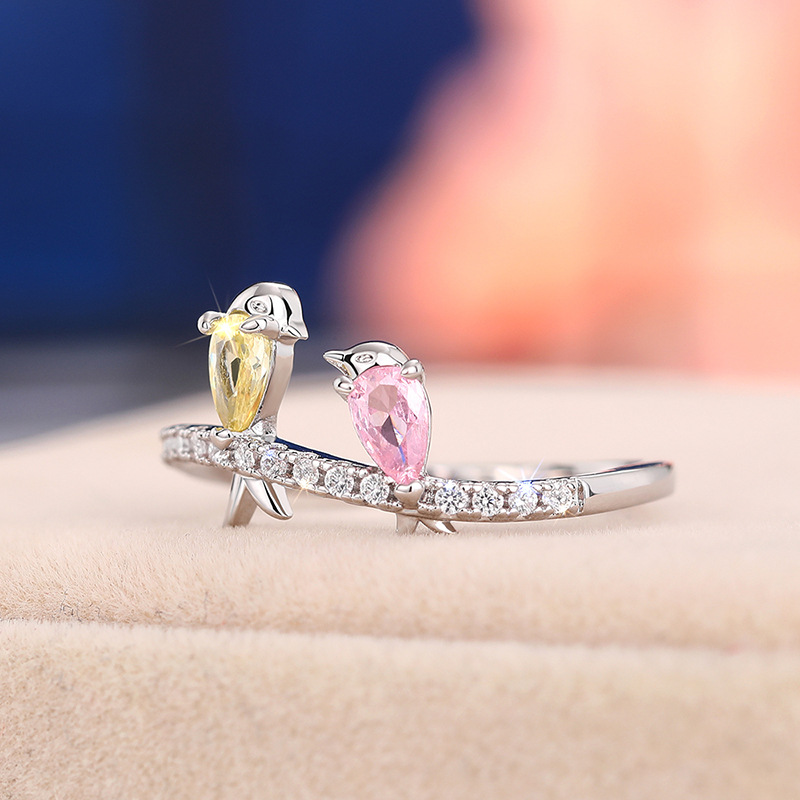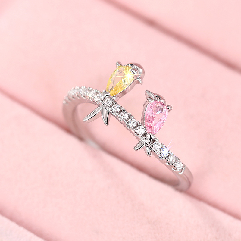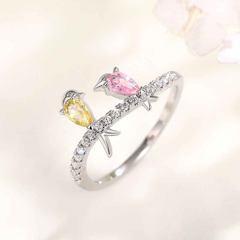 New European and American small fresh colorful bird ring Korean version cute swallow ring for Mother's Day gift