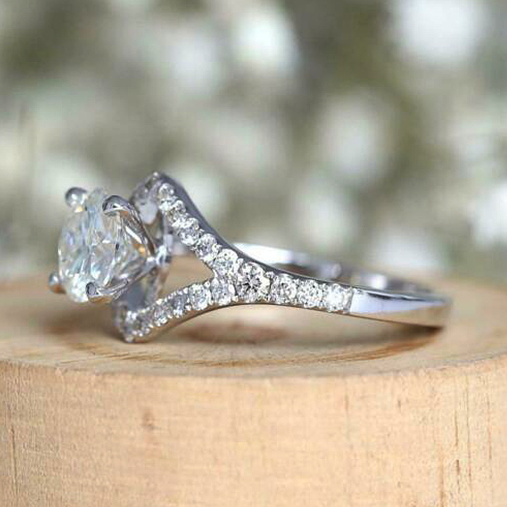 New best-selling super flash ring tree branch bud four-claw inlaid ring light luxury wedding ring for girlfriend