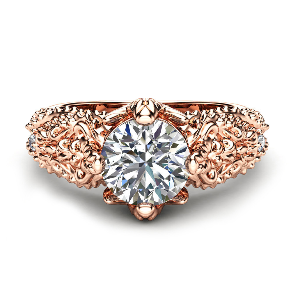 New European and American style flower and vine imitation diamond ring women's luxury copper plated rose gold zircon ring