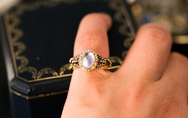 New European and American style moonstone women's ring geometric line shape alloy crystal jewelry