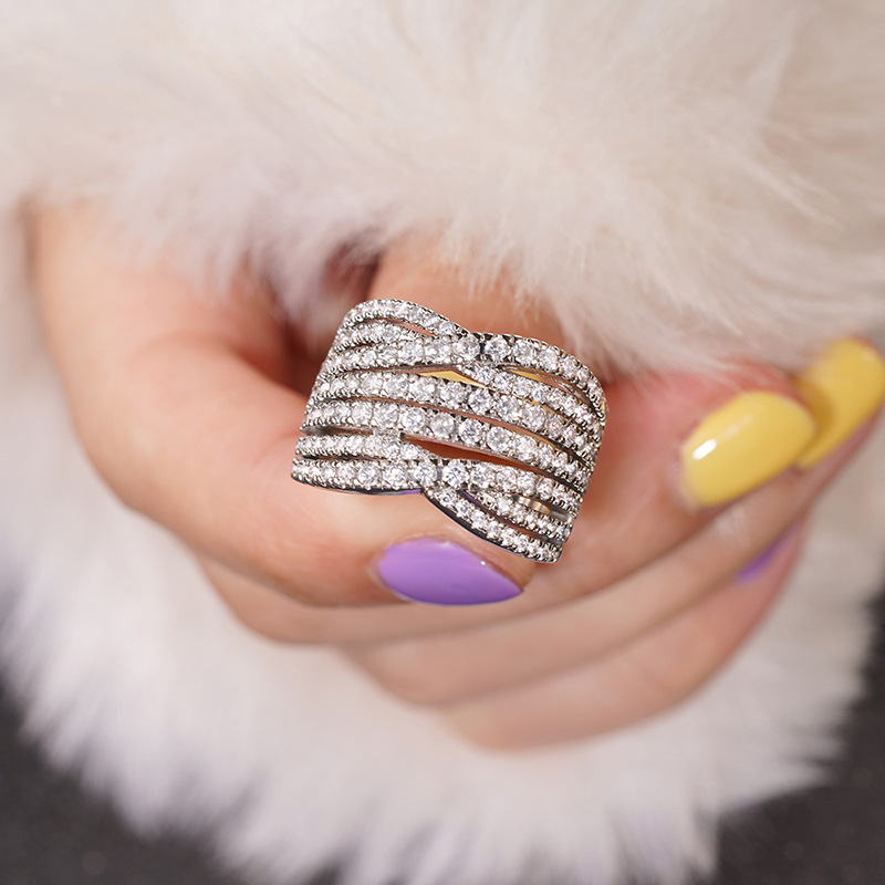 European and American luxury design ring fashionable temperament horse eye zircon ring multi-layer hollow design index finger ring