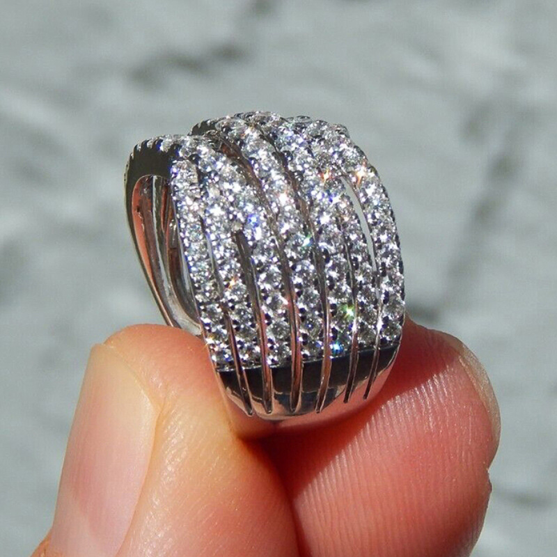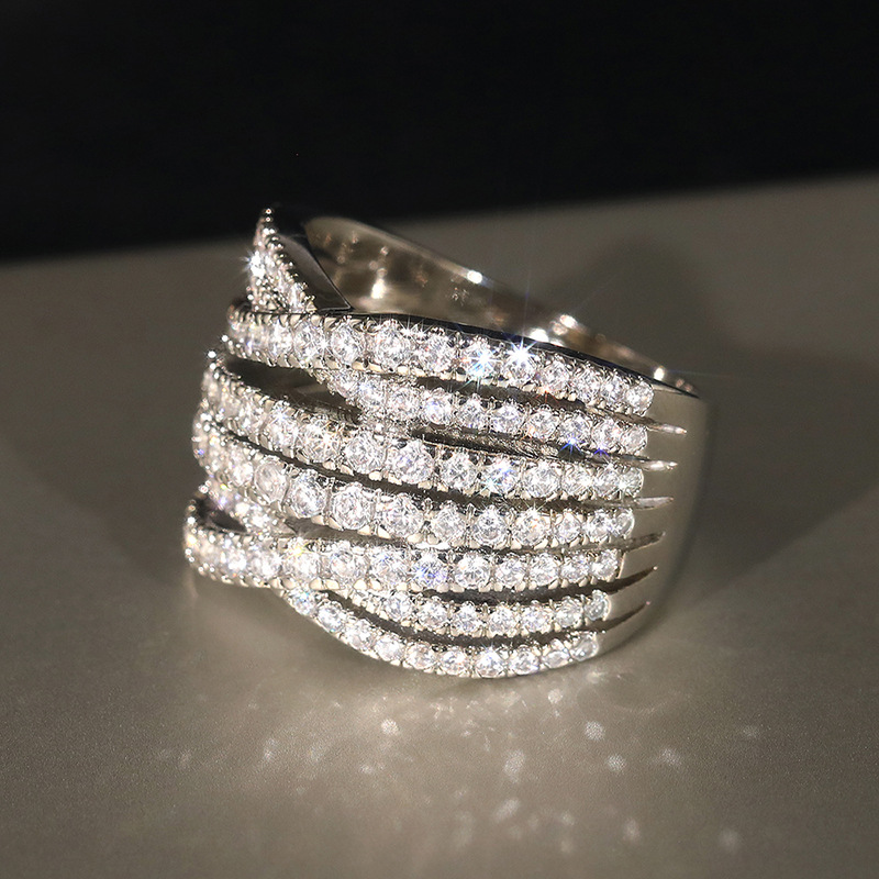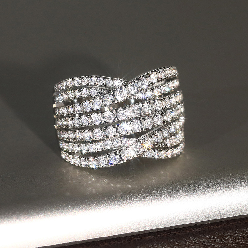 Micro-inlaid celebrity style classic all-match popular ring six-claw zircon wedding ring European and American style light luxury ring