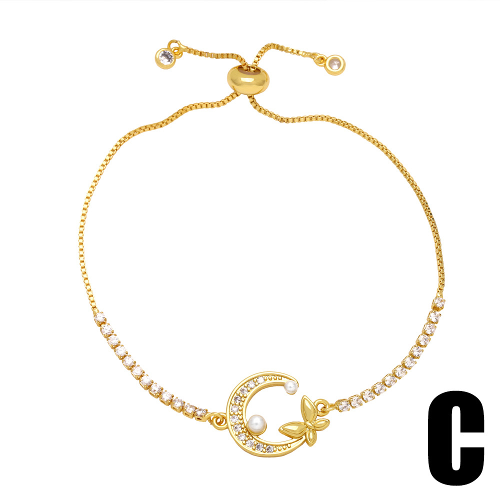 AS jewelry full zirconium 26 English letters bracelet copper plated real gold adjustment jewelry brm62