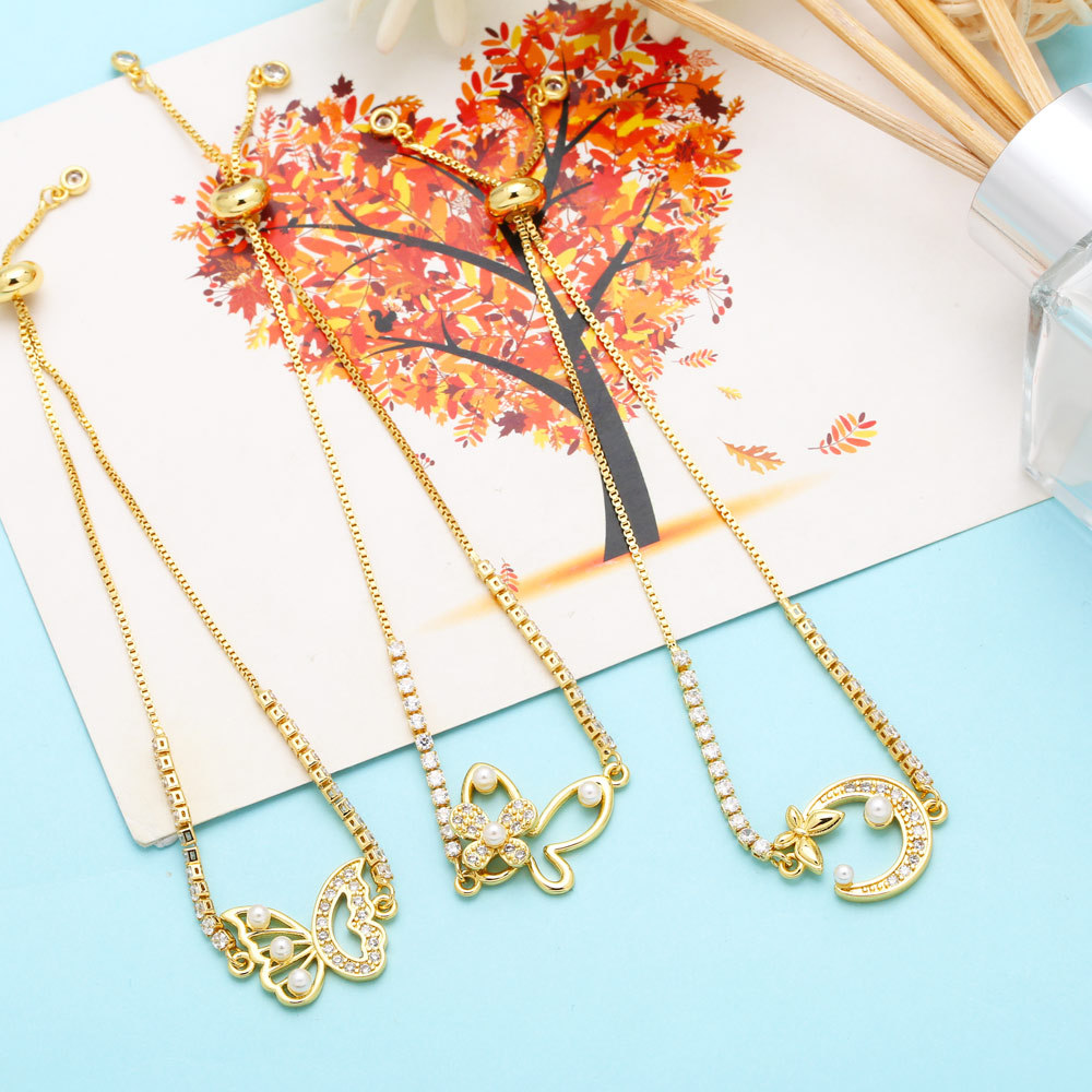 New European and American style simple pearl butterfly bracelet girls fashionable versatile adjustable bracelet brk42