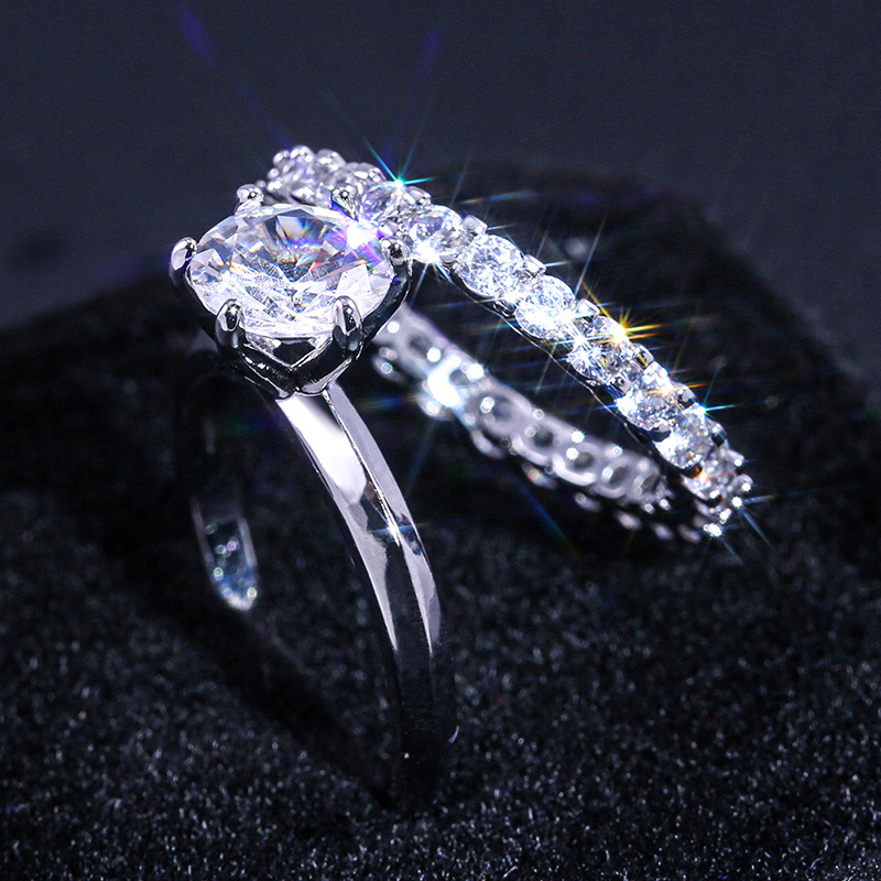 Micro-inlaid celebrity style classic all-match popular ring six-claw zircon wedding ring European and American style light luxury ring