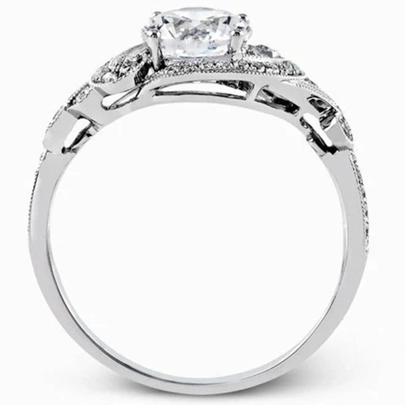 New European and American wedding ring platinum-plated twisted arm winding inlaid simulated zircon ring engagement ring