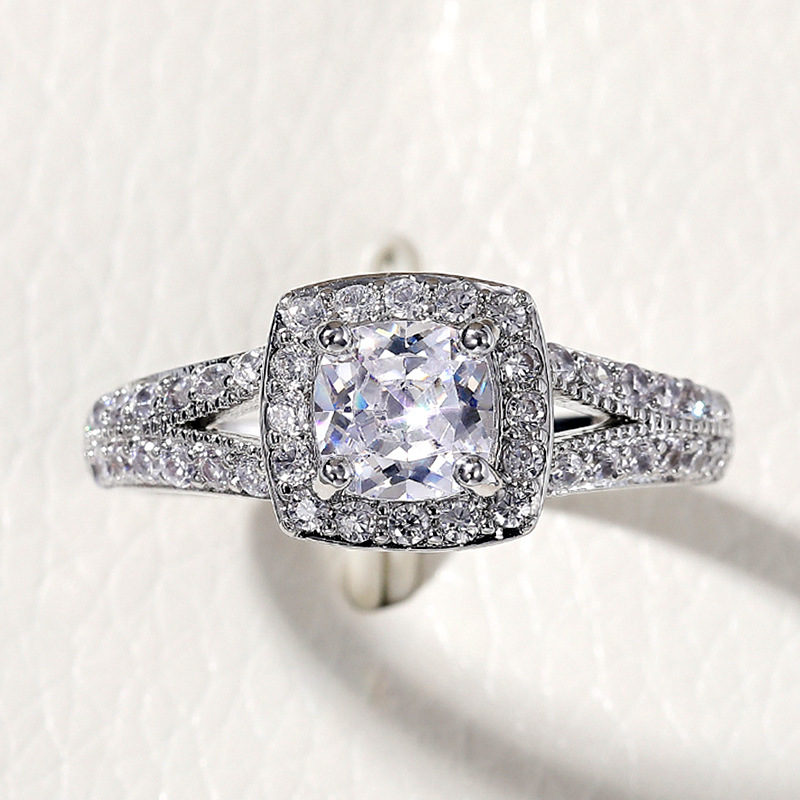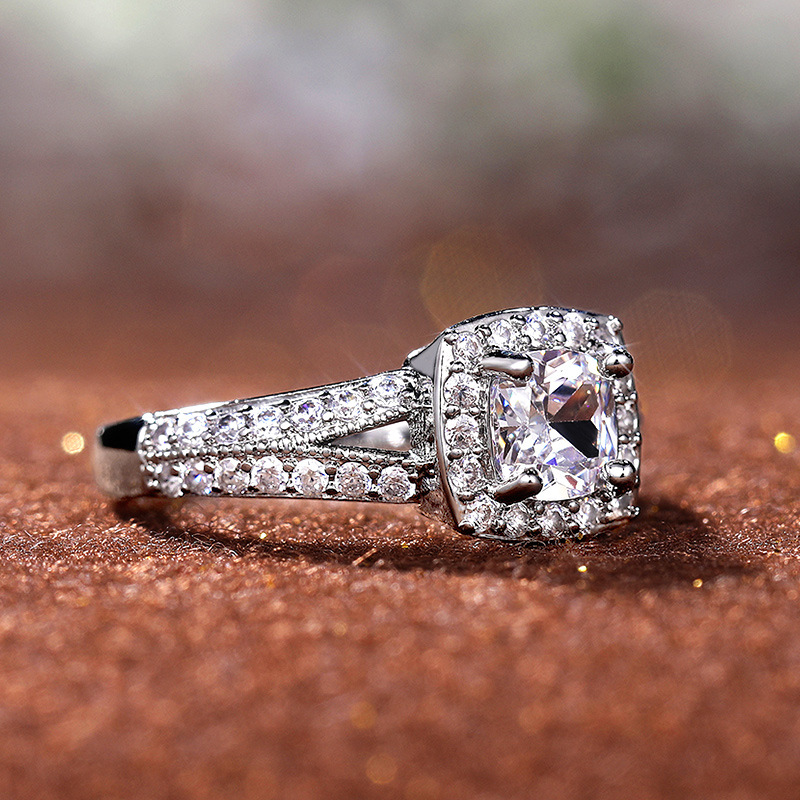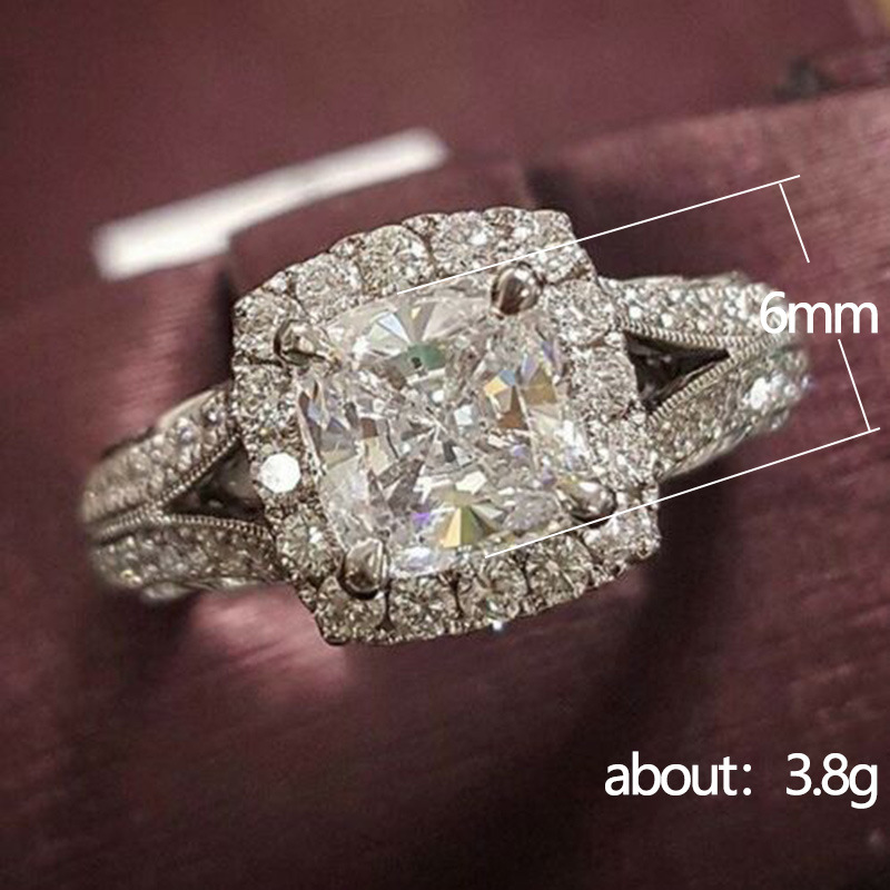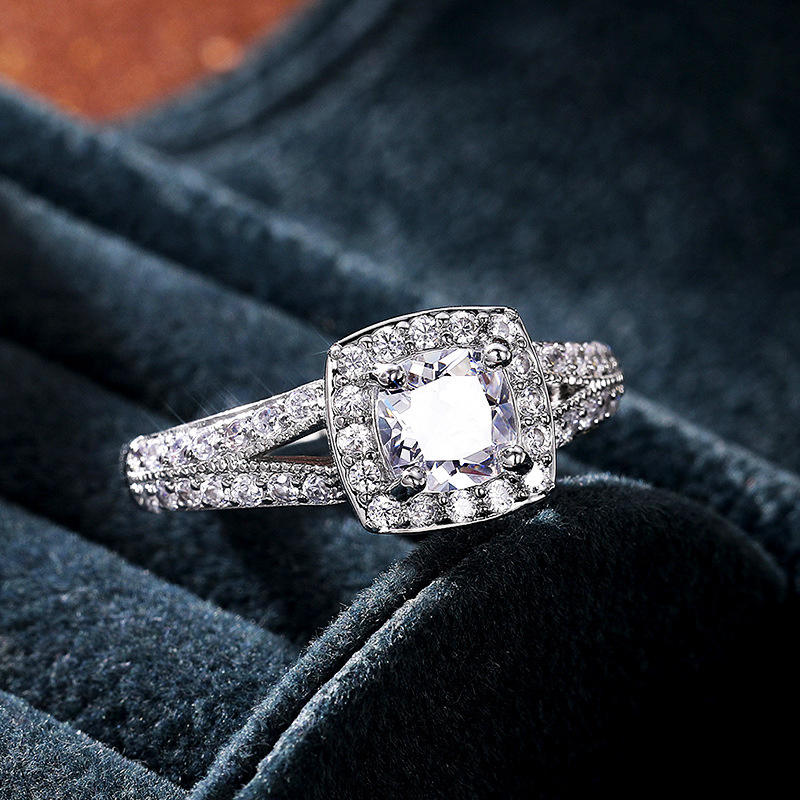 New European and American wedding rings with four claws and square zircon rings for women, fashionable and trendy proposal jewelry