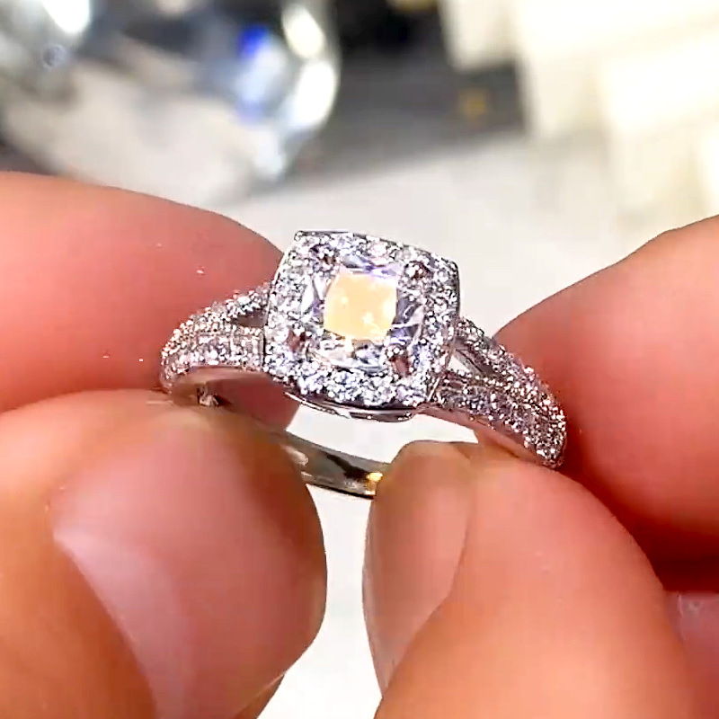 Hot selling new princess square ring European and American hot style inlaid zircon women's jewelry engagement proposal ring