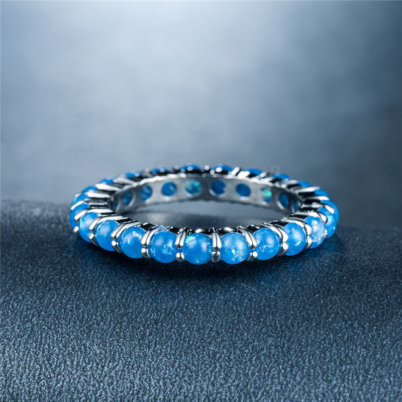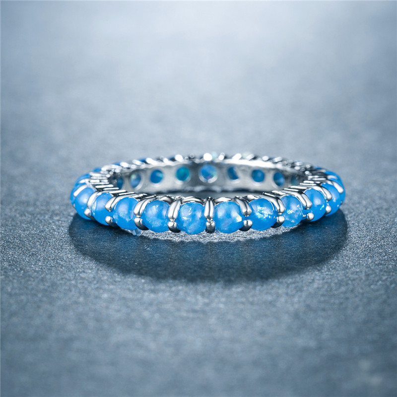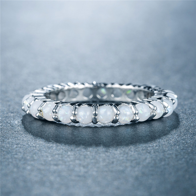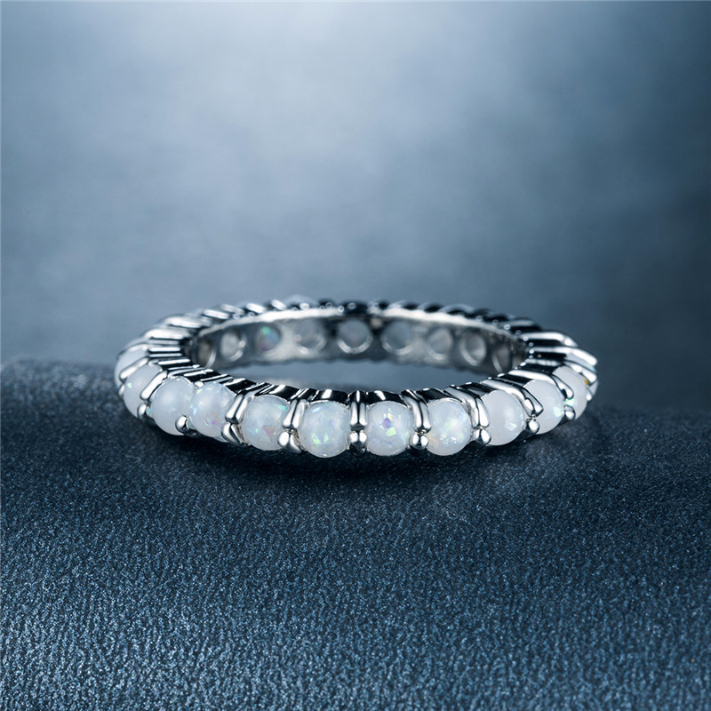New European and American women's imitation opal ring copper plated white gold full inlaid artificial opal