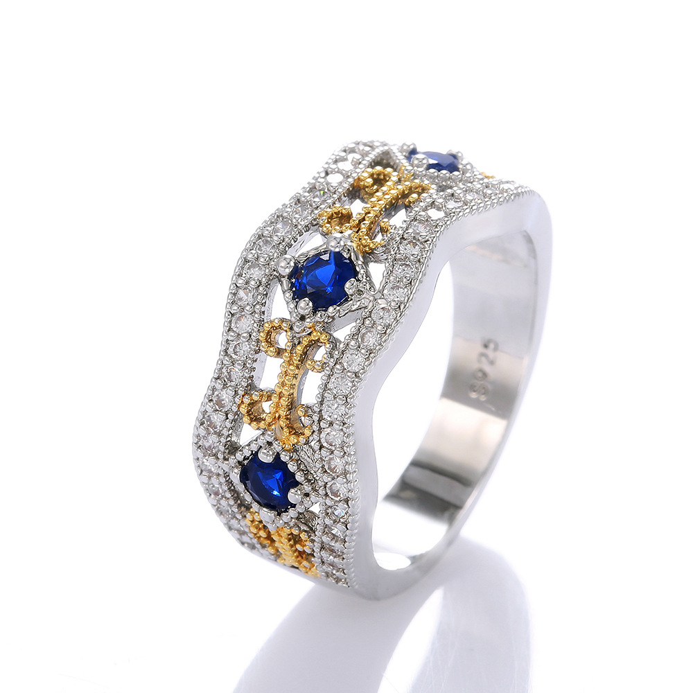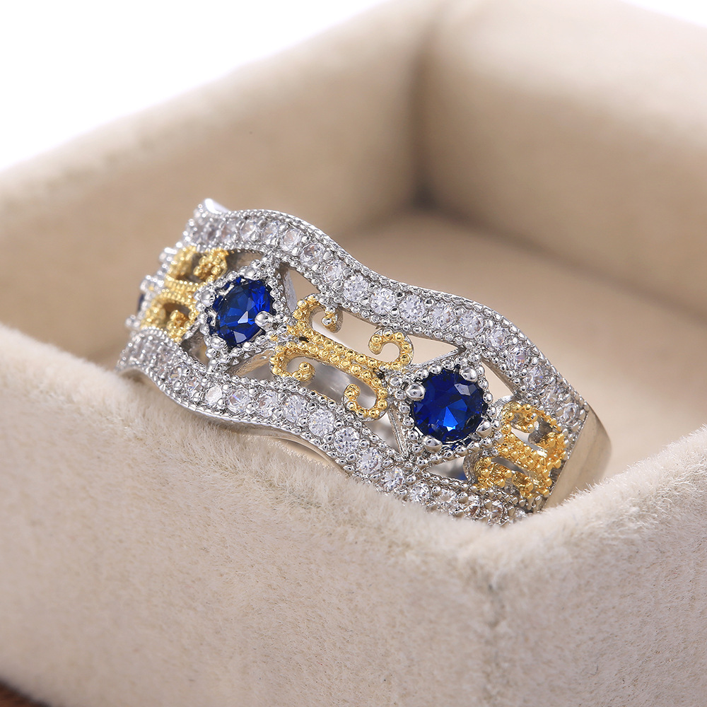 New exquisite pattern hollow diamond two-tone ring female simple geometric zircon jewelry