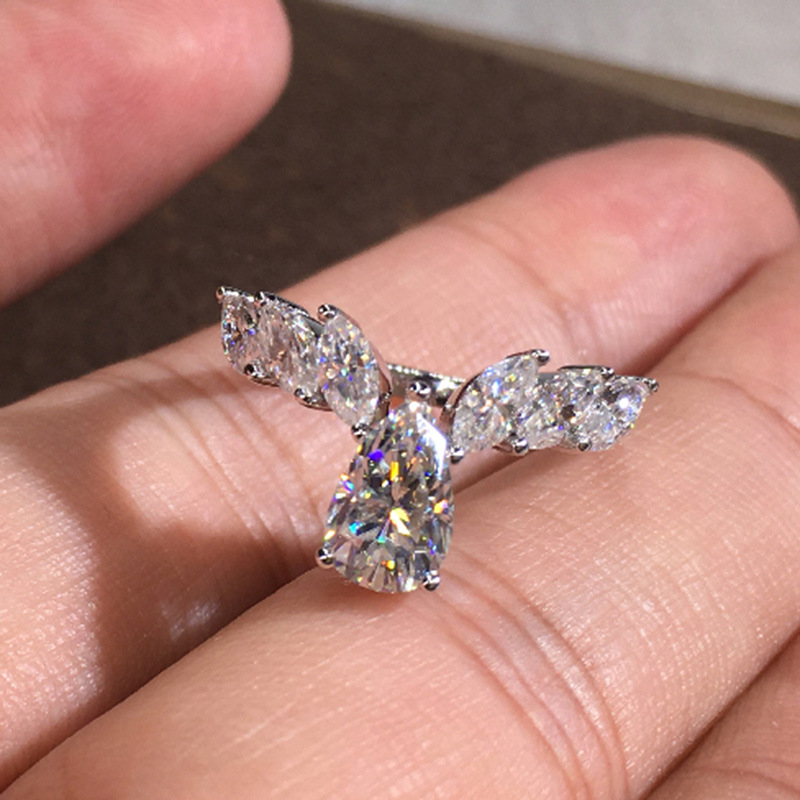 New exquisite pear-shaped teardrop-shaped zircon ring for women, fashionable women's engagement ring