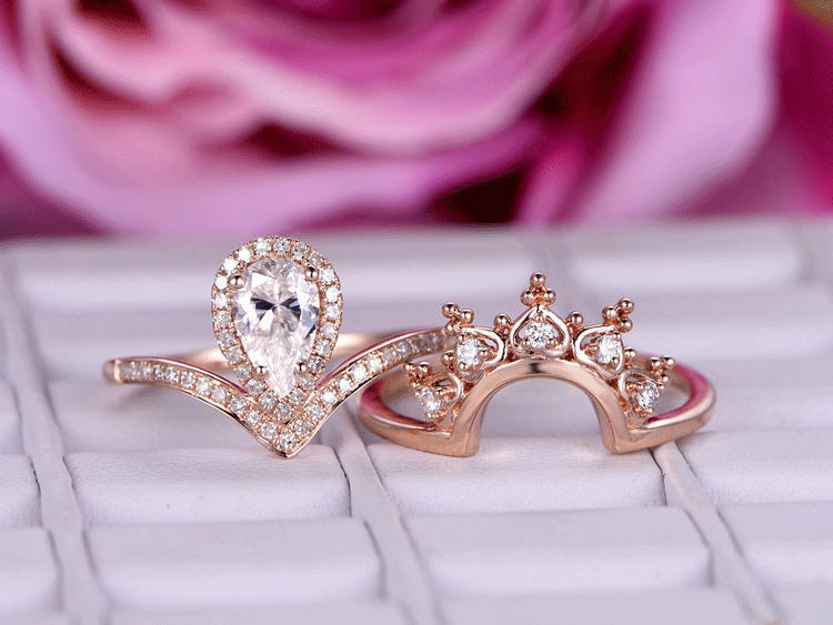 Small crown luxury French hot-selling water drop special flower floral ring temperament princess index finger ring