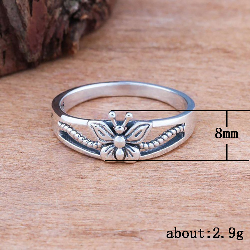 New exquisite simple ladies antique silver plated butterfly ring copper plated daily jewelry wholesale