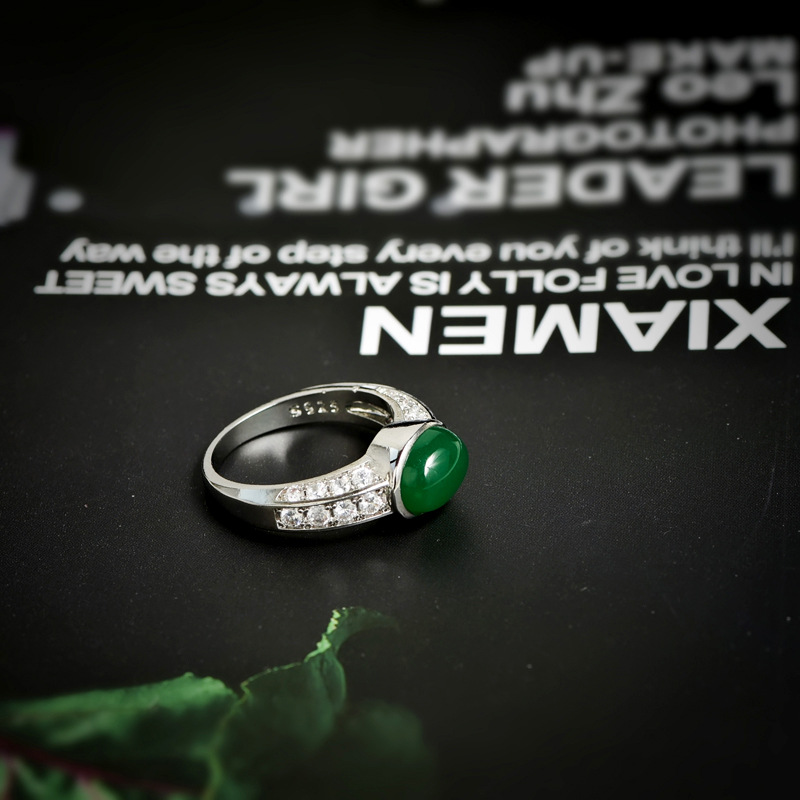 New factory direct sales vintage style emerald gemstone ring for women micro inlaid zircon copper jewelry