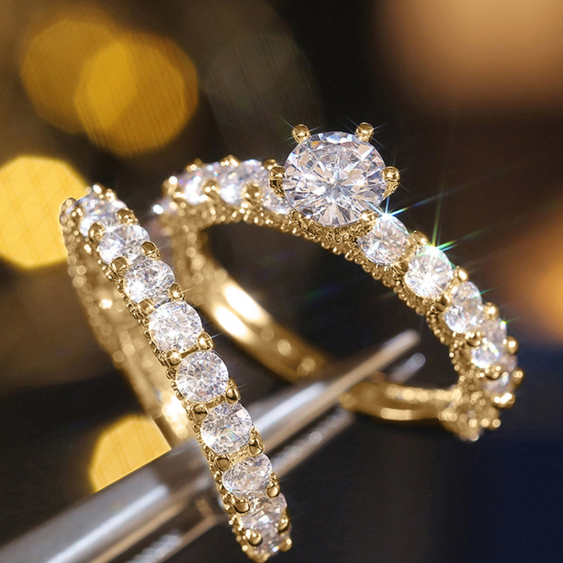 New fashion accessories high-end full diamond and zircon couple ring design copper women's engagement wedding ring