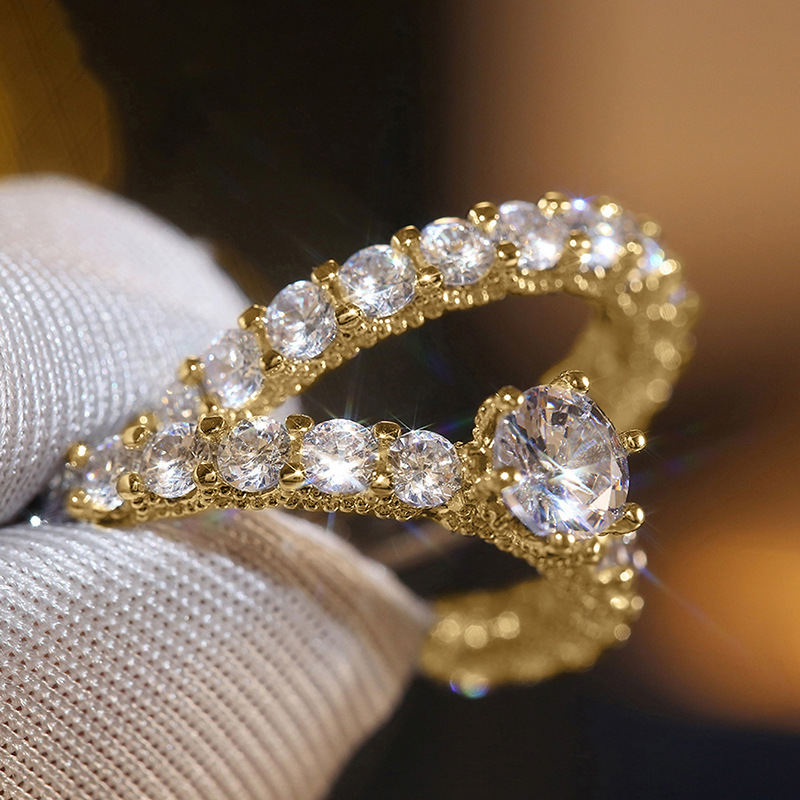 Classic four-claw imitation zircon micro-inlaid ring women's double row two-color twist arm ring engagement wedding ring women