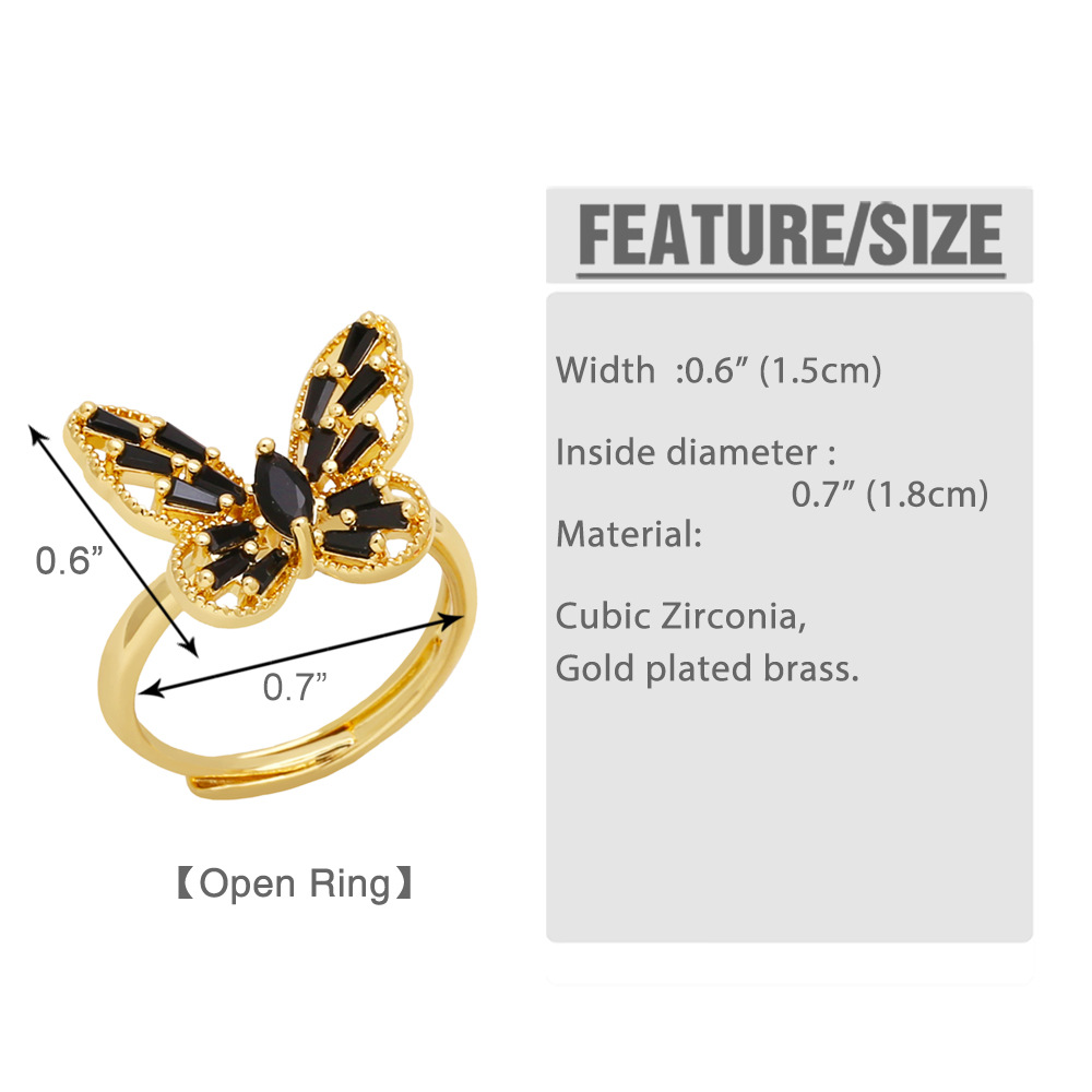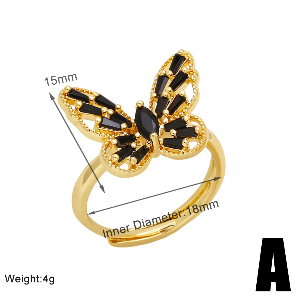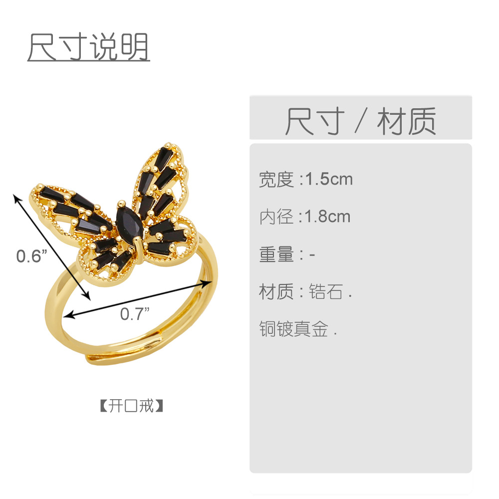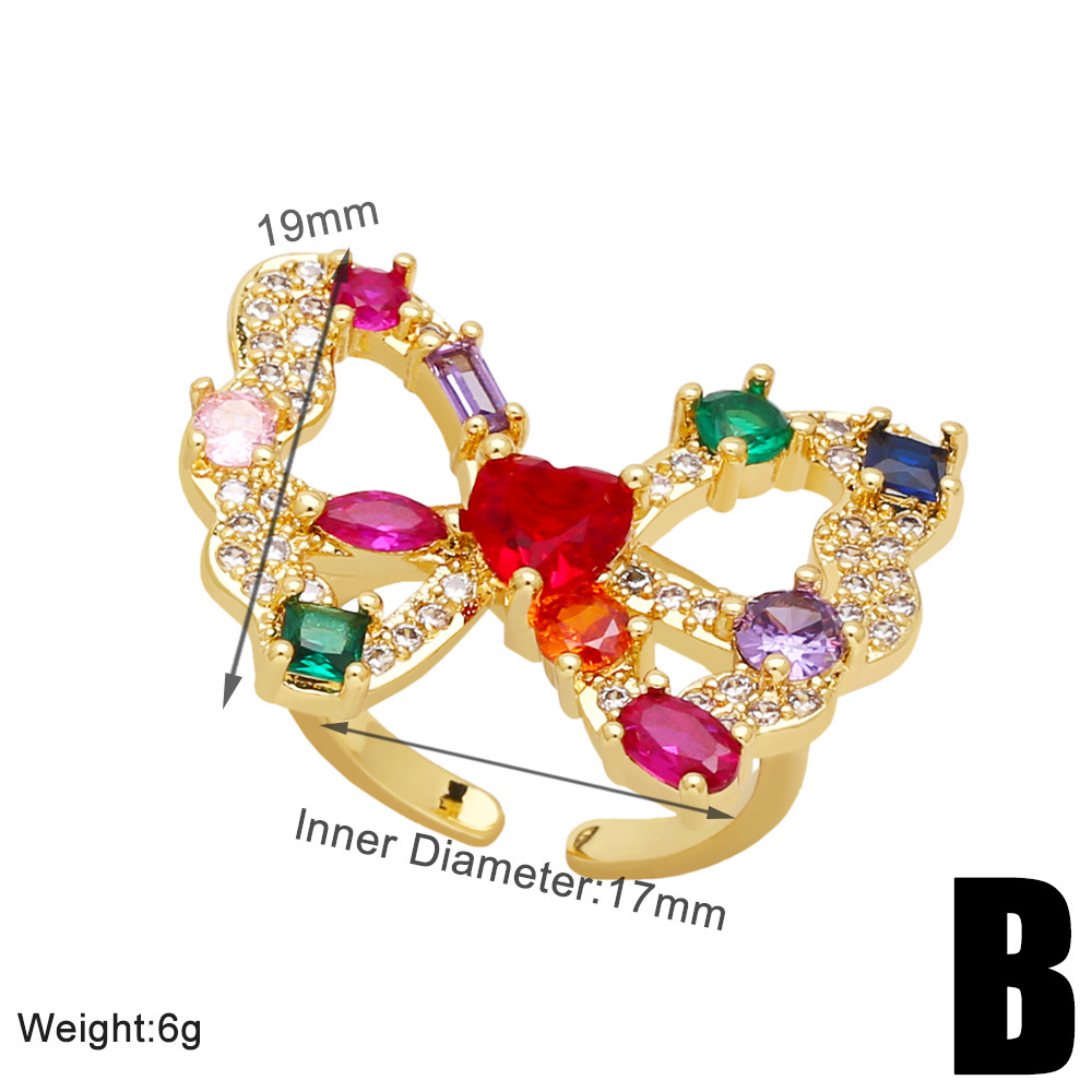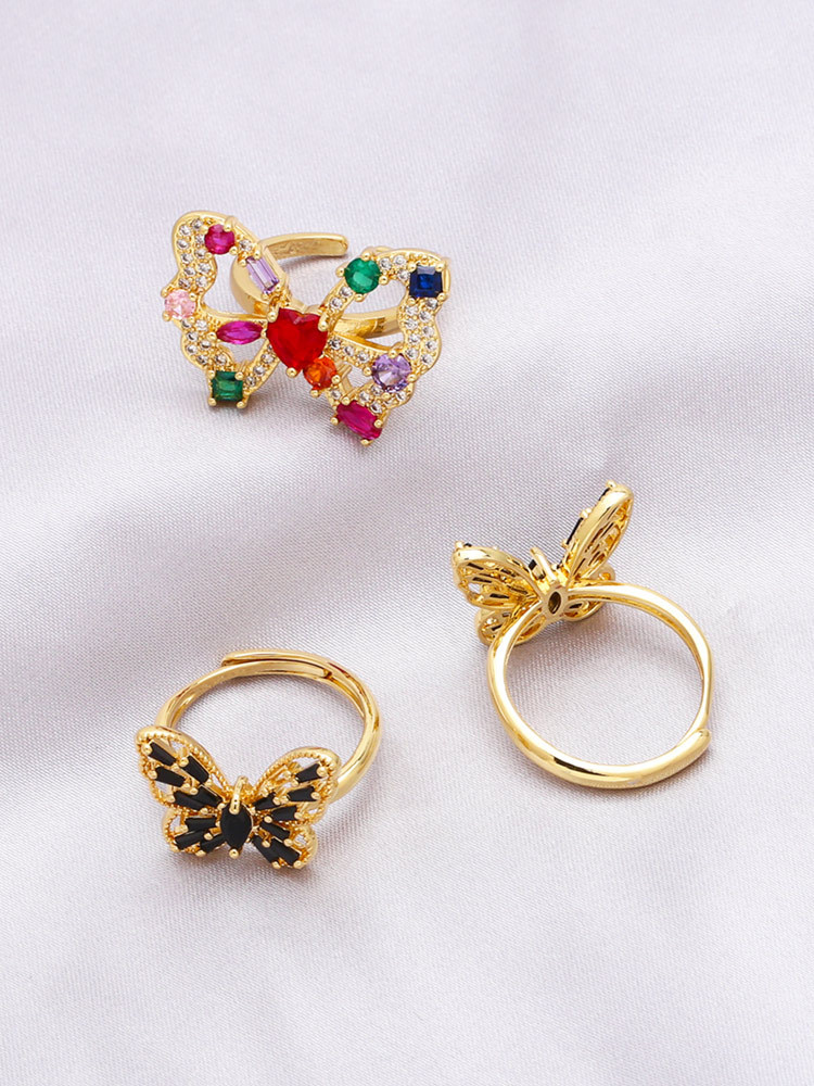 New fashion inlaid colored zircon ring female niche design open gold-plated butterfly ring rih79