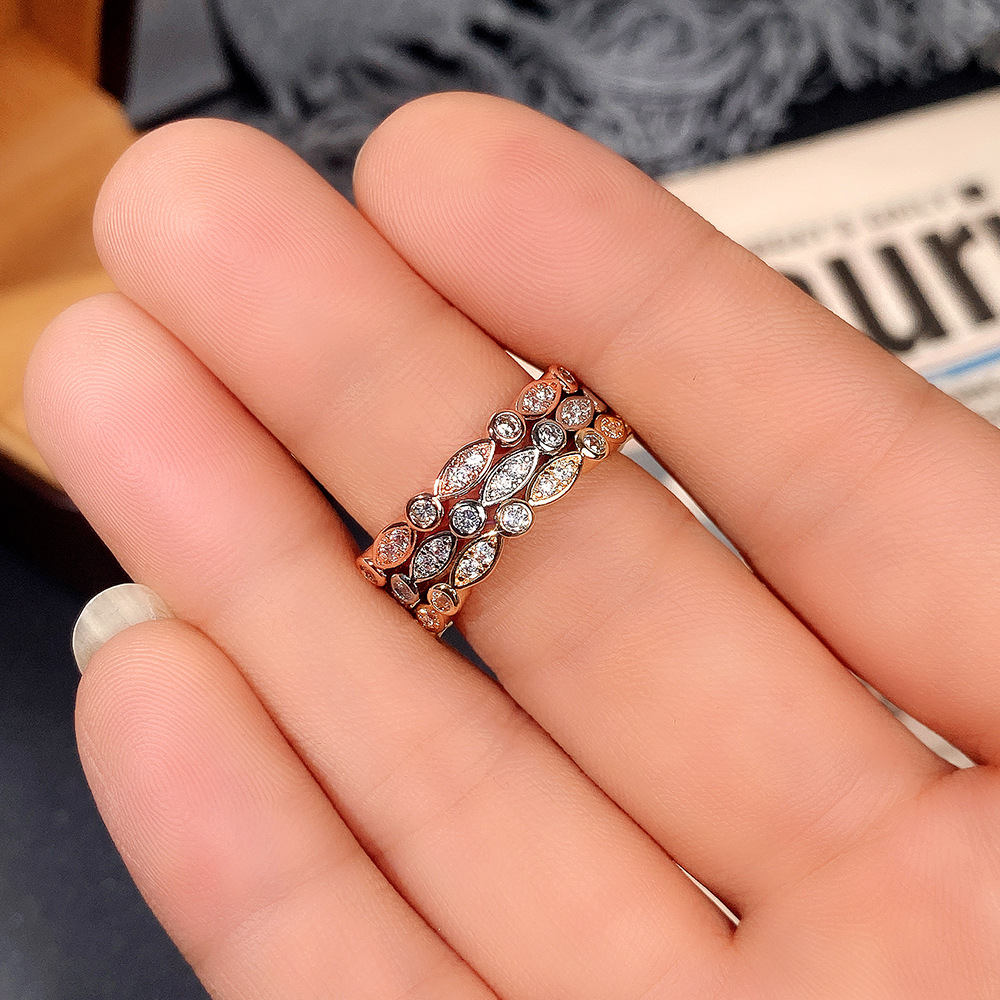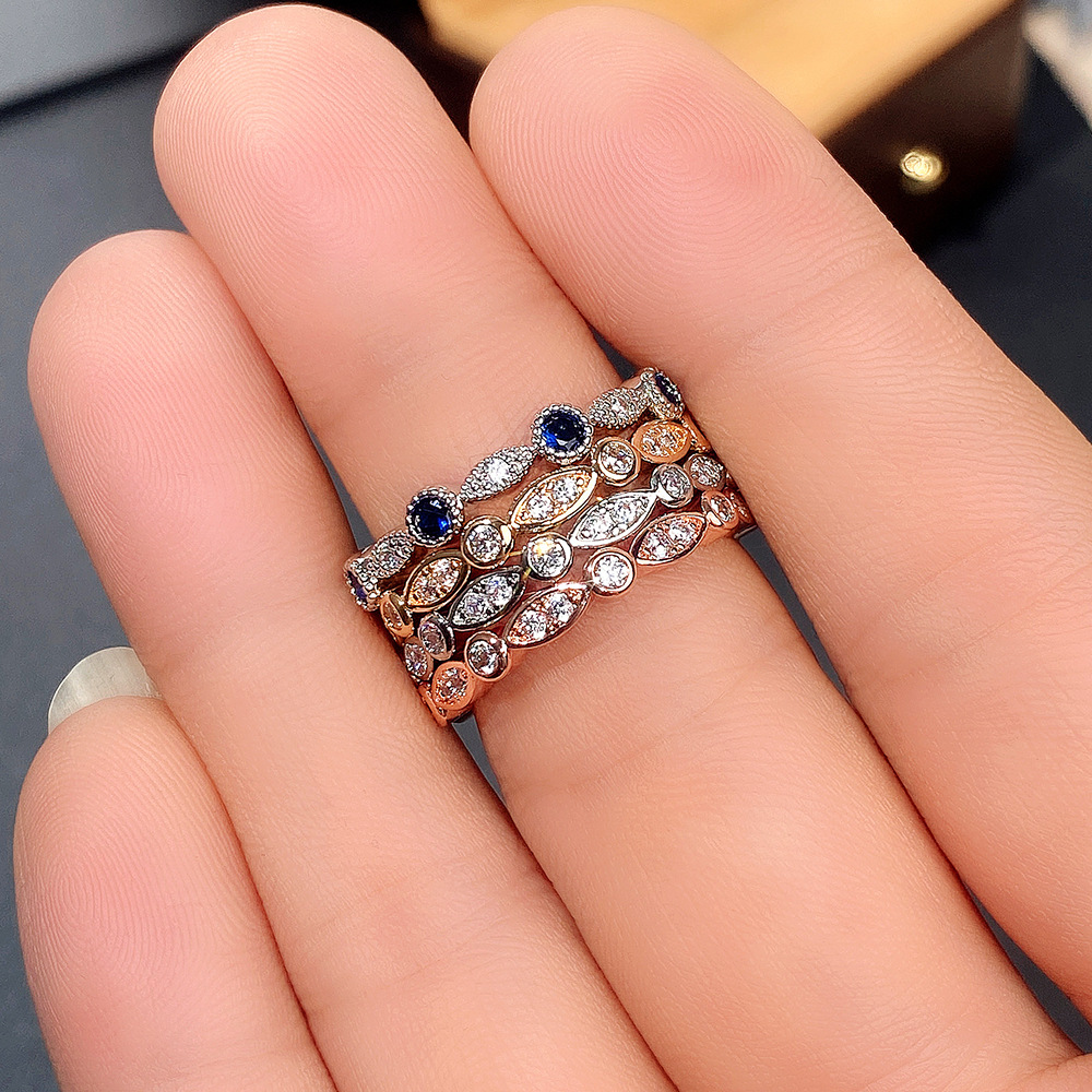 European and American luxury design ring fashionable temperament horse eye zircon ring multi-layer hollow design index finger ring