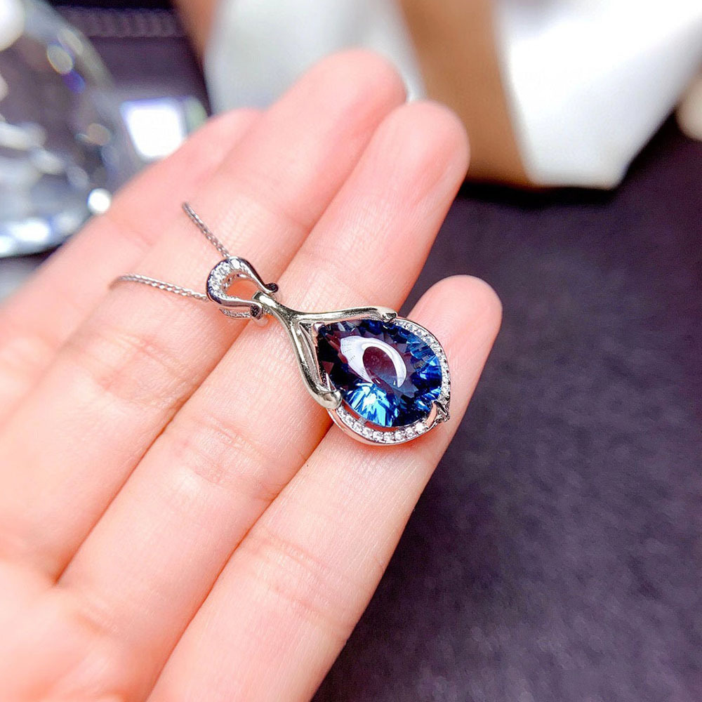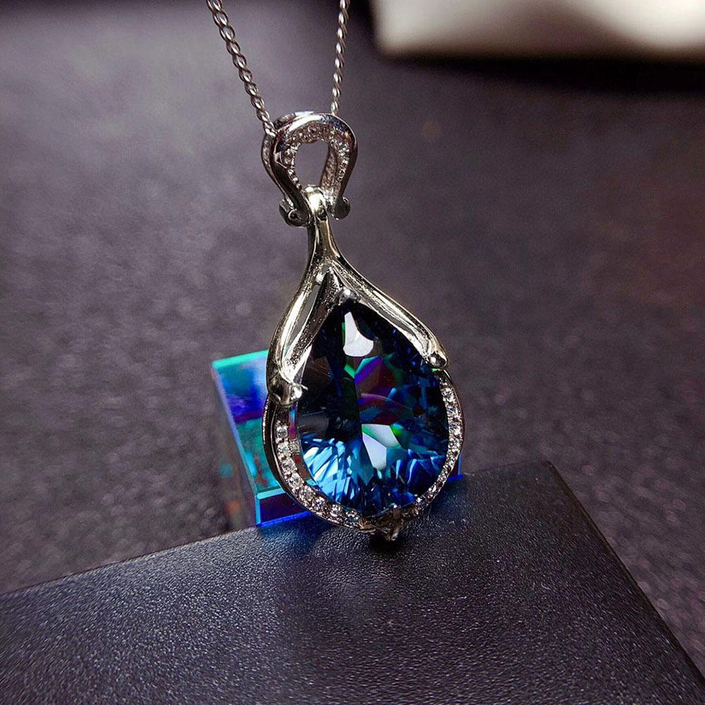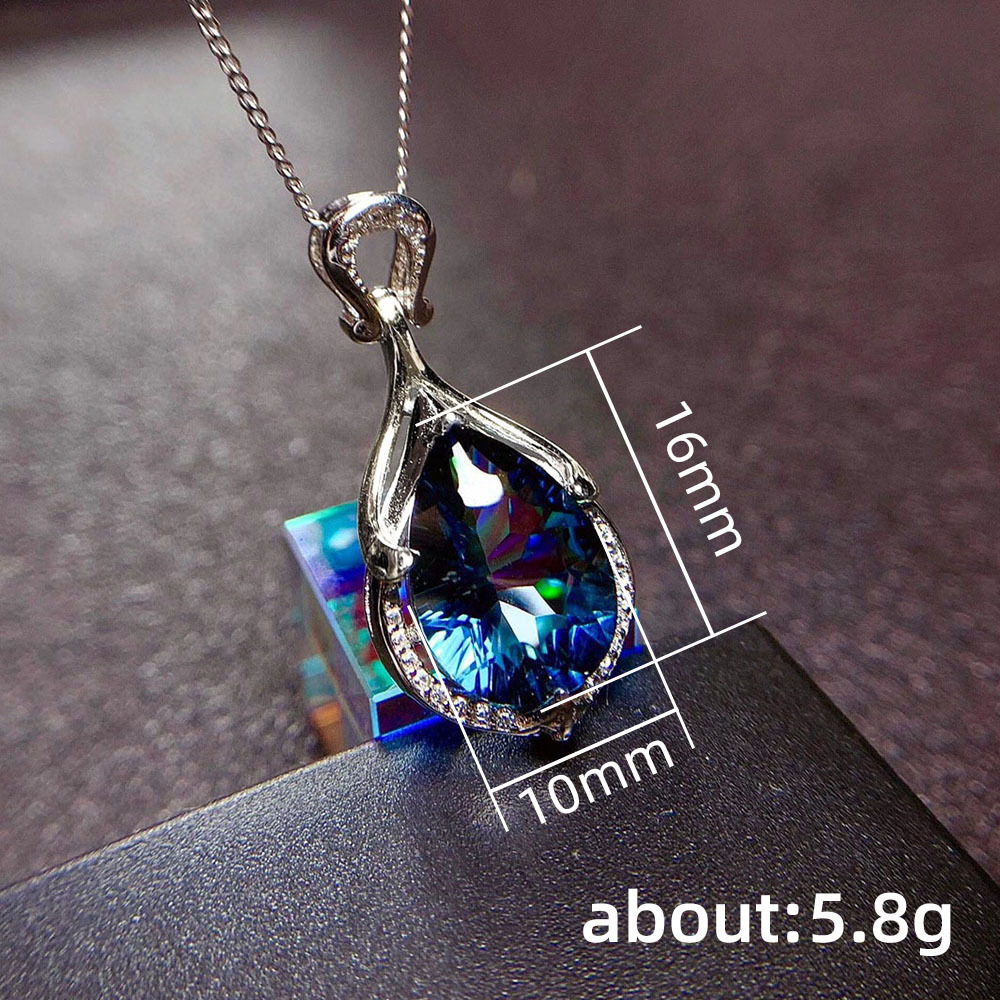 New fashion mermaid tears pendant online sales live hot style imitation sapphire water drop colored gemstone necklace
