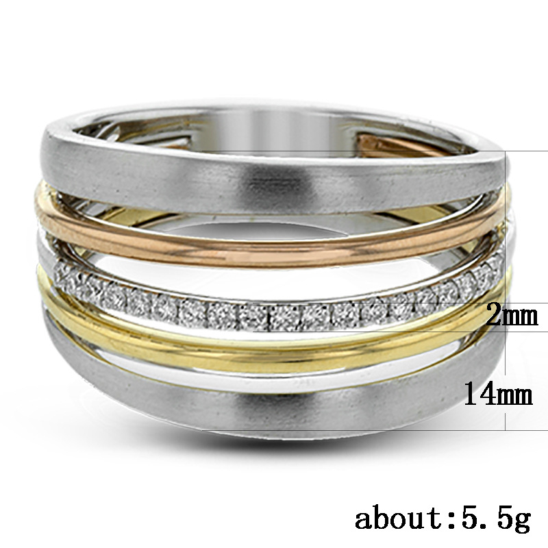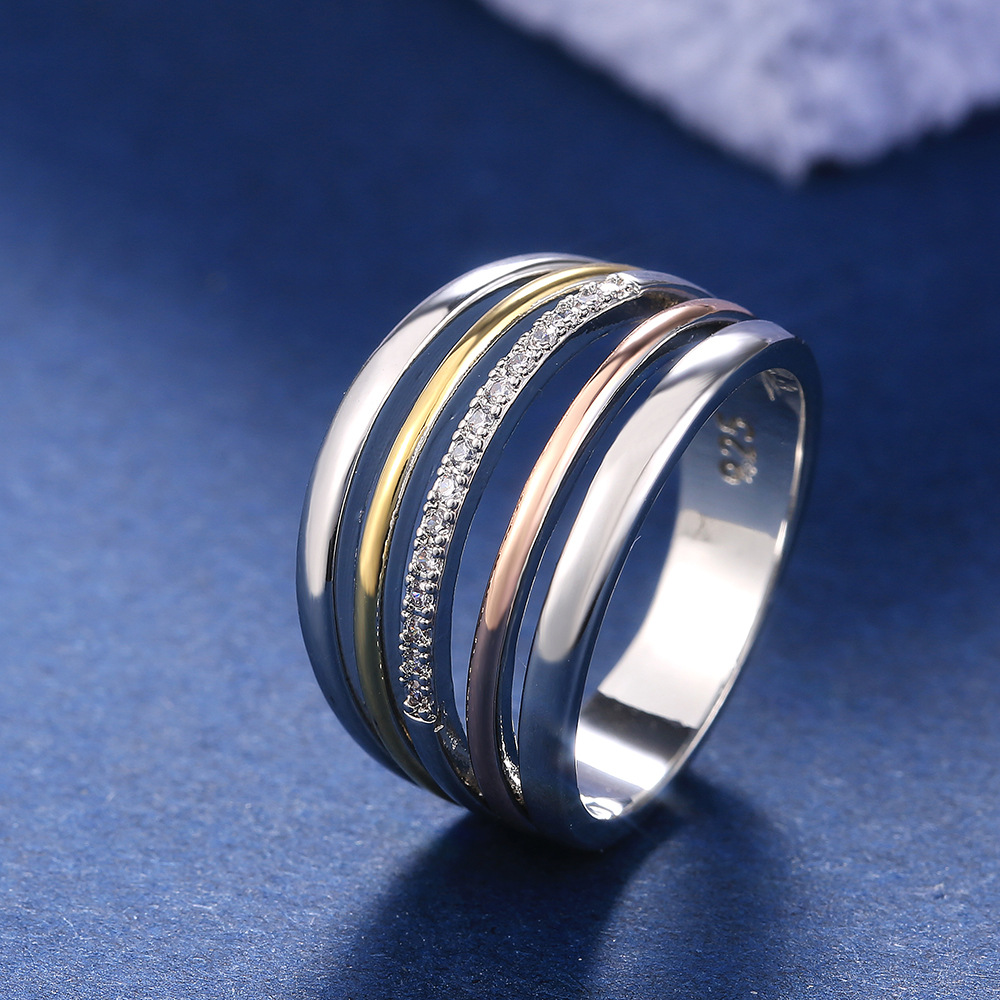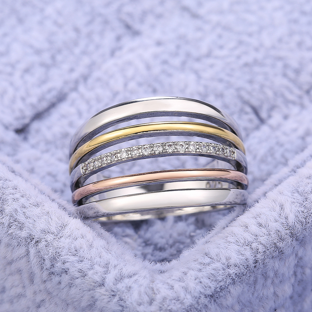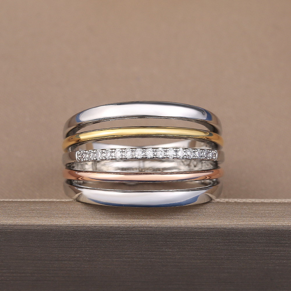 New fashion multi-ring combination three-color electroplating inlaid zircon ring trendy ring line ring wholesale