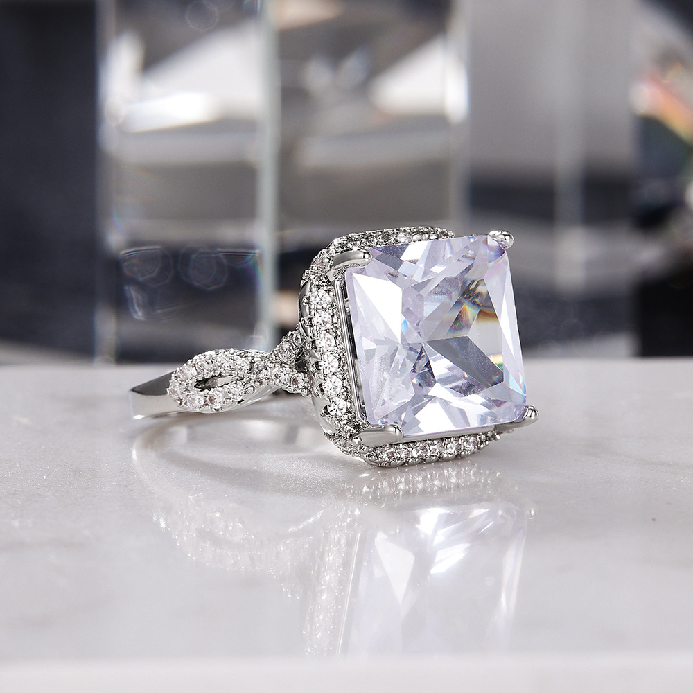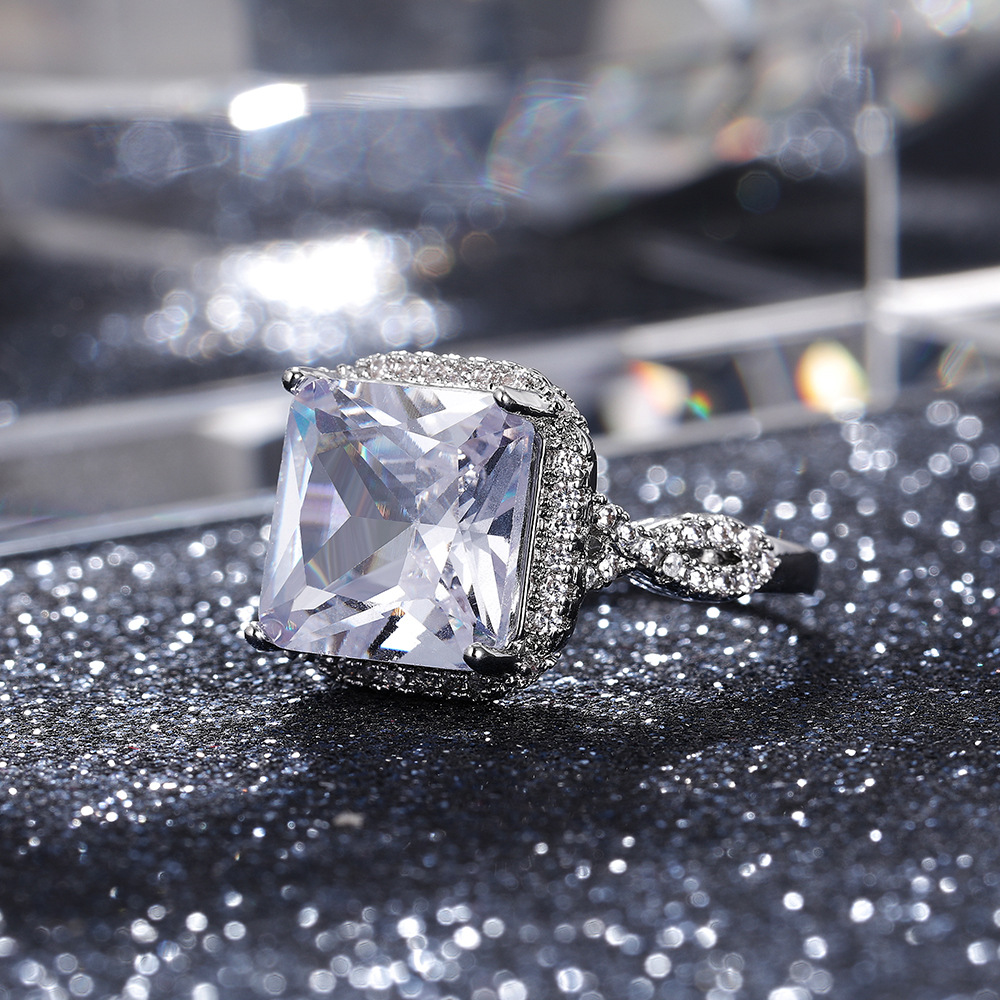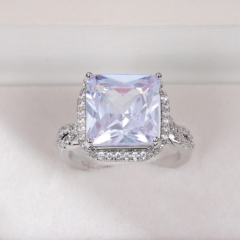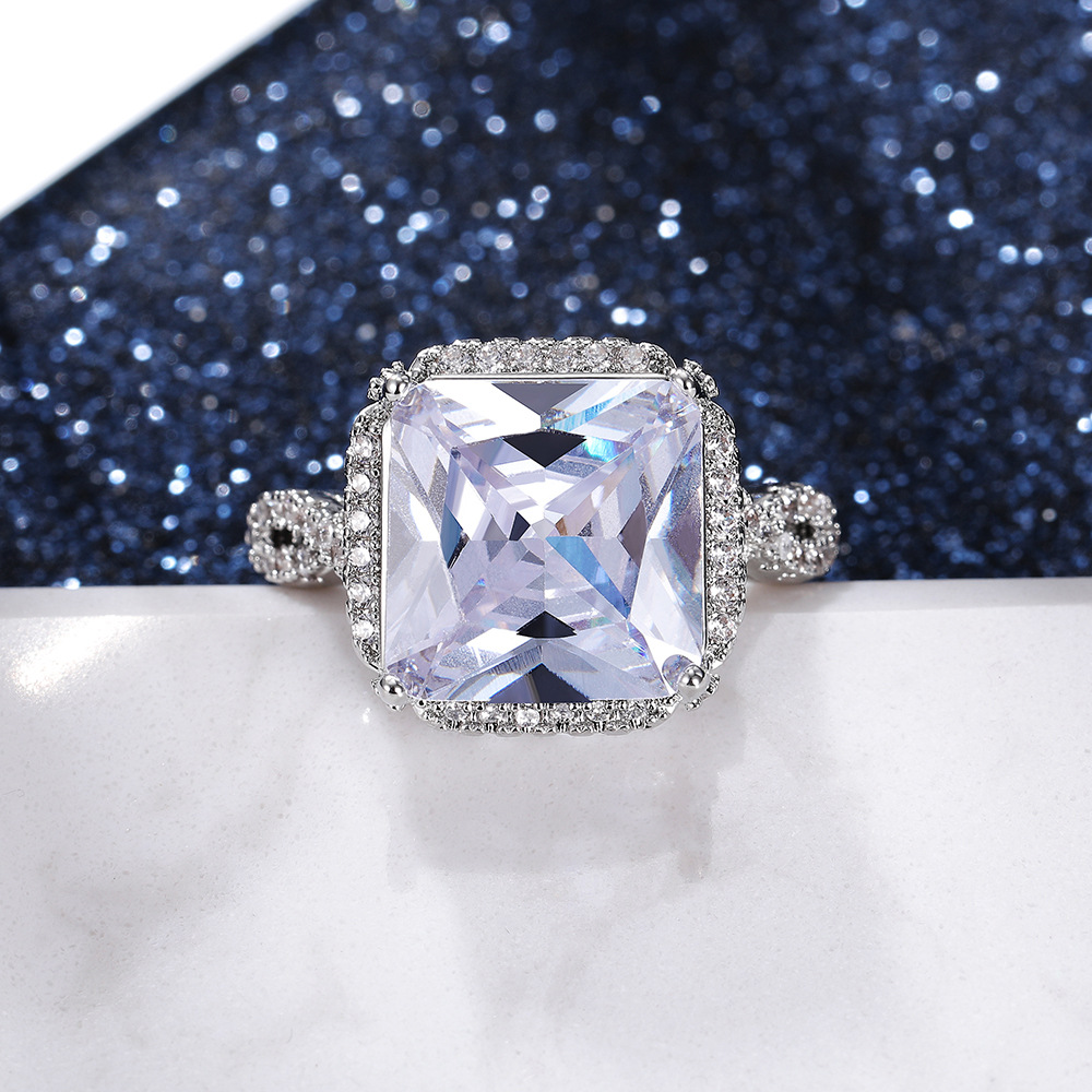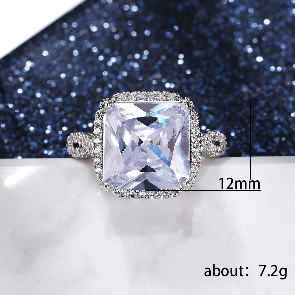 Hot selling new princess square ring European and American hot style inlaid zircon women's jewelry engagement proposal ring