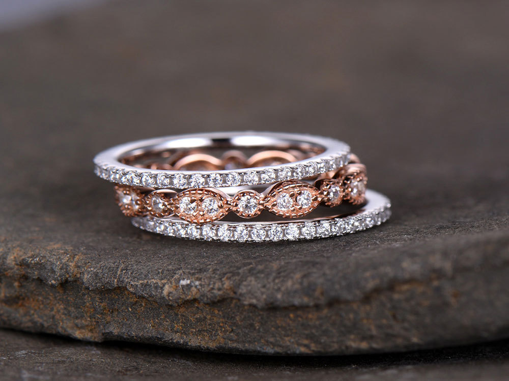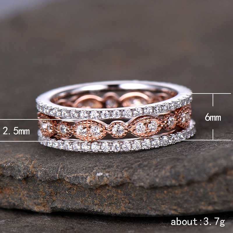 New fashion women's full-studded zircon ring three-in-one combination ring set party copper ring