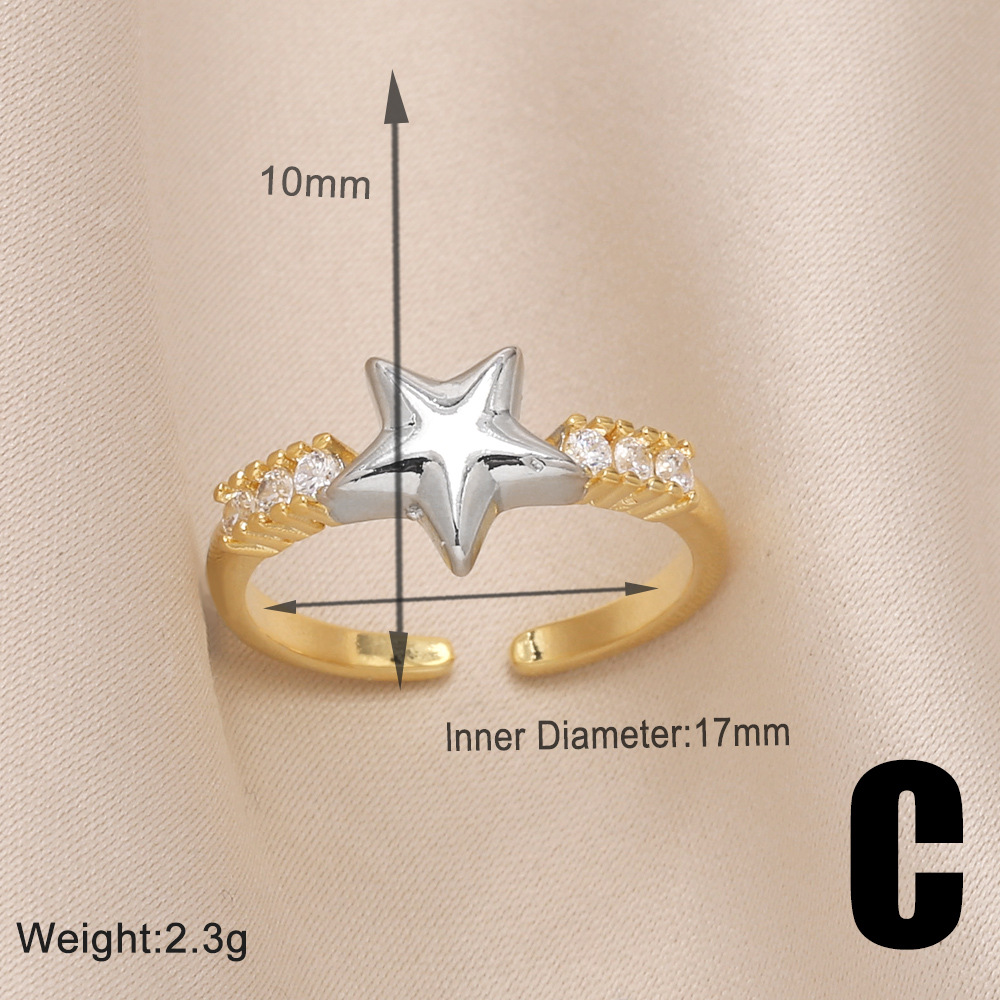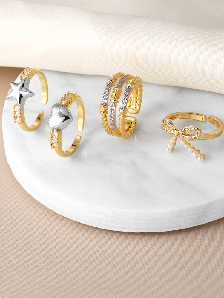 New five-pointed star ring female gold-plated zircon inlaid love bow double layer ring rin15